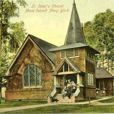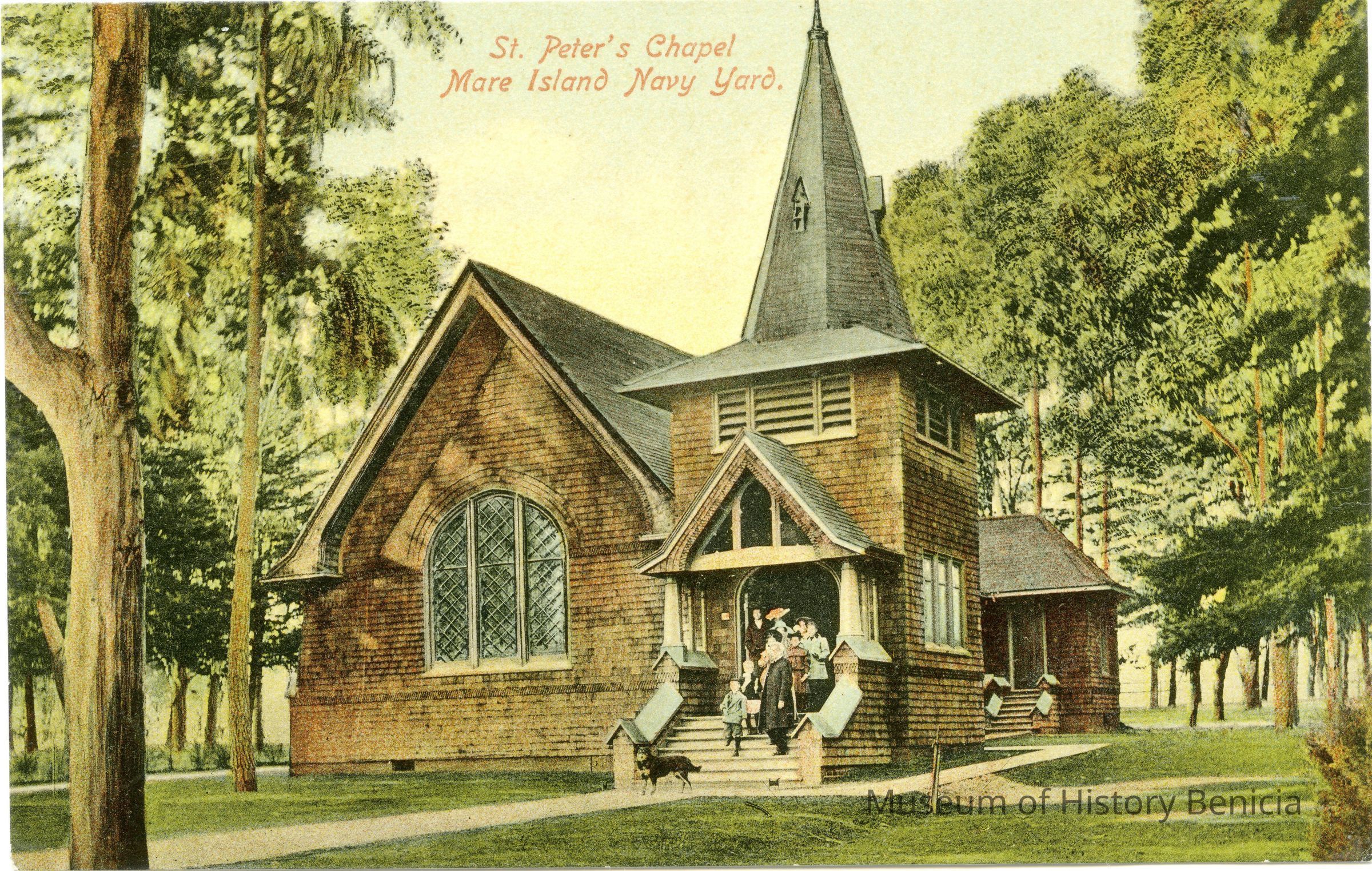 This is a colorized divided back postcard of St. Peter's on Mare Island. It is published by Frank J. Stumm of Benicia. The back is blank