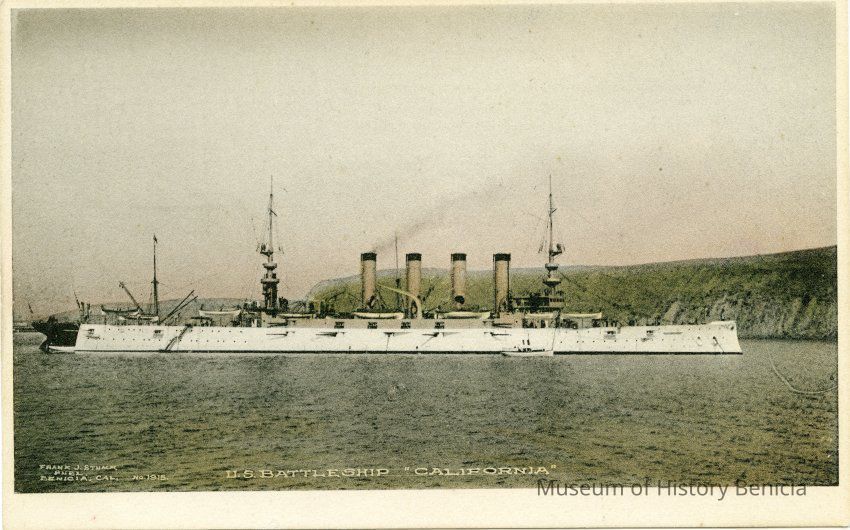 This is a divided back postcard. The photo is of the U.S. battleship "California". It was published by Frank J. Stumm of Benicia. The back is blank.Collection
