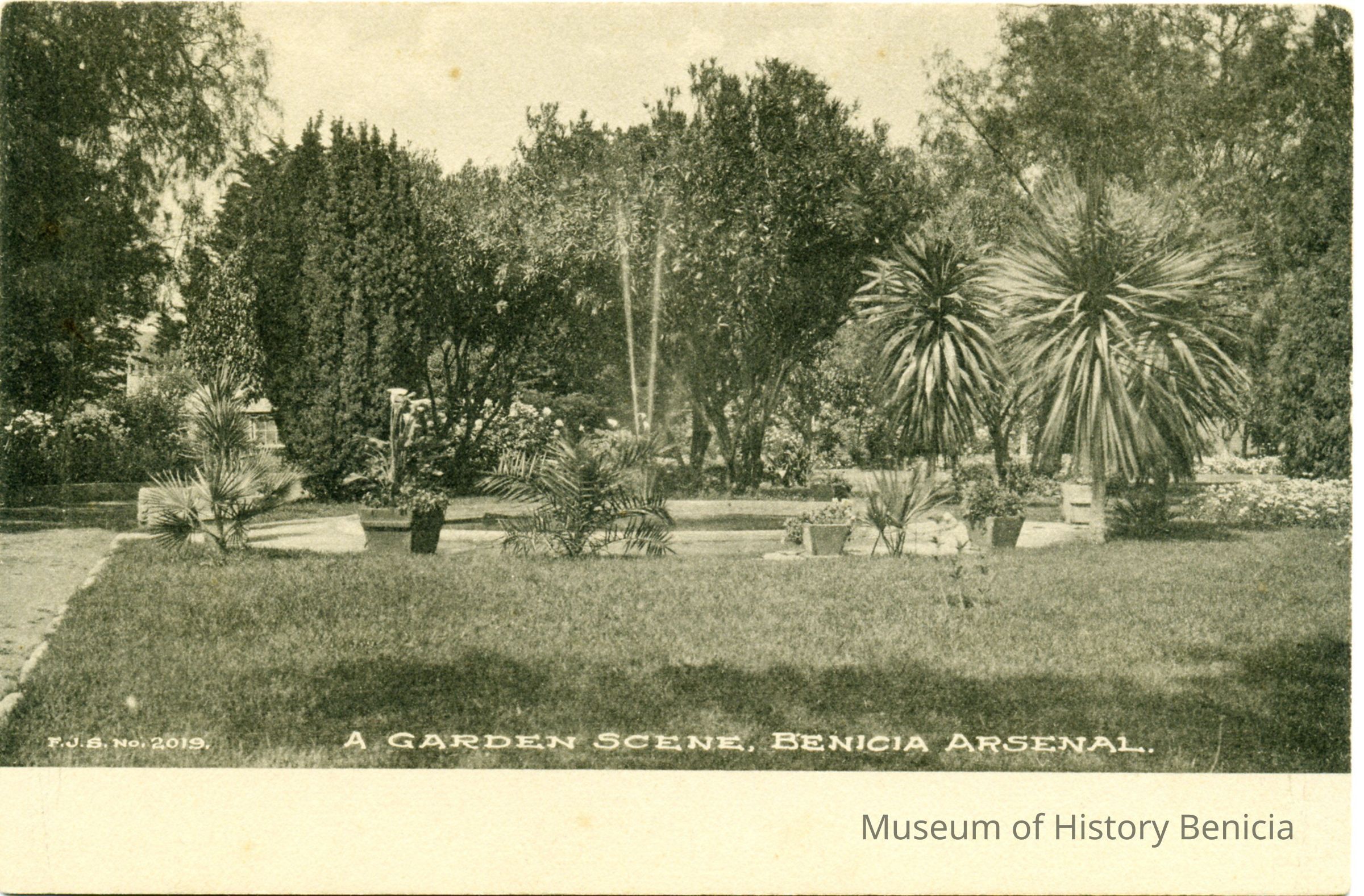 This is a divided back postcard. The photo is of a garden at the Arsenal in Benicia. The back is blank. The card was published by Frank J. Stumm.Collection