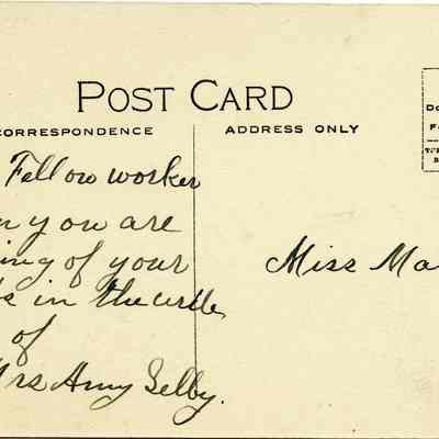 This is a postcard of St. Dominic's Church in Benicia, CA. The card is not stamped but does show it was for Miss Mahan. The message is: