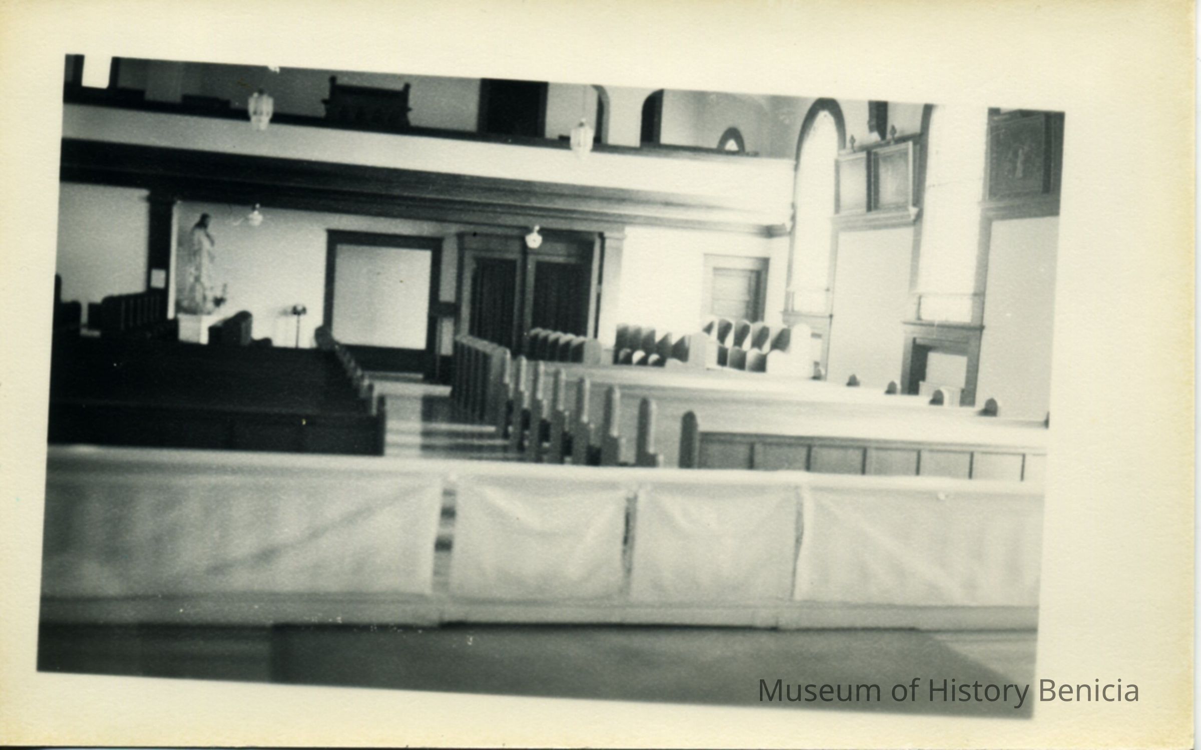 Photo taken inside Chapel at St. Catherine's. Church pews and confessional