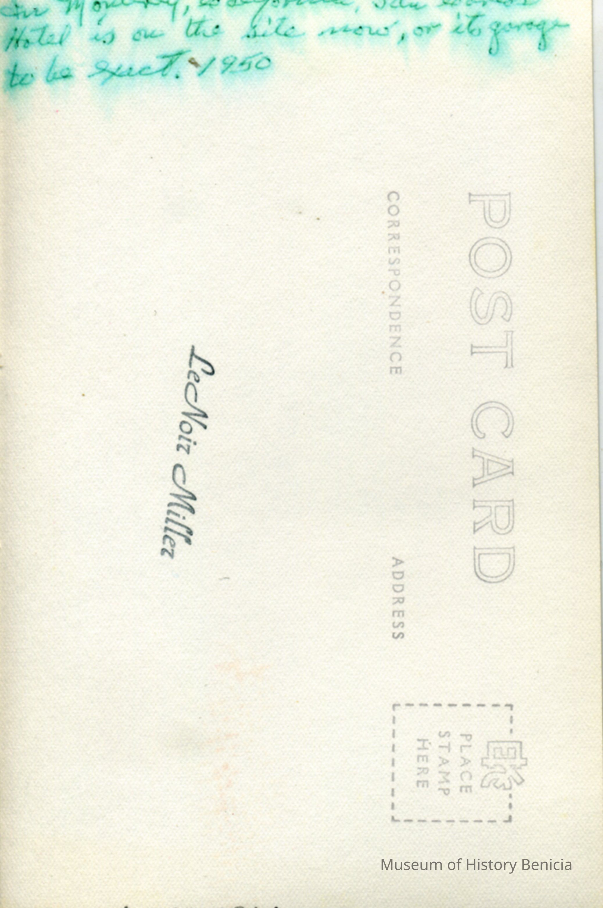 Written on the back: In Monterey, California San Carlos Hotel is on the site now