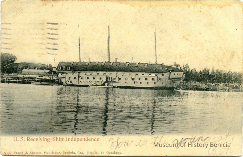 This is an undivided back black & white postcard of the Receiving ship Independence at the Mare Island Ship Yards. It was published by Frank J. Stumm in Benicia and numbered 6652 . The card has a blank on the bottom for the message.