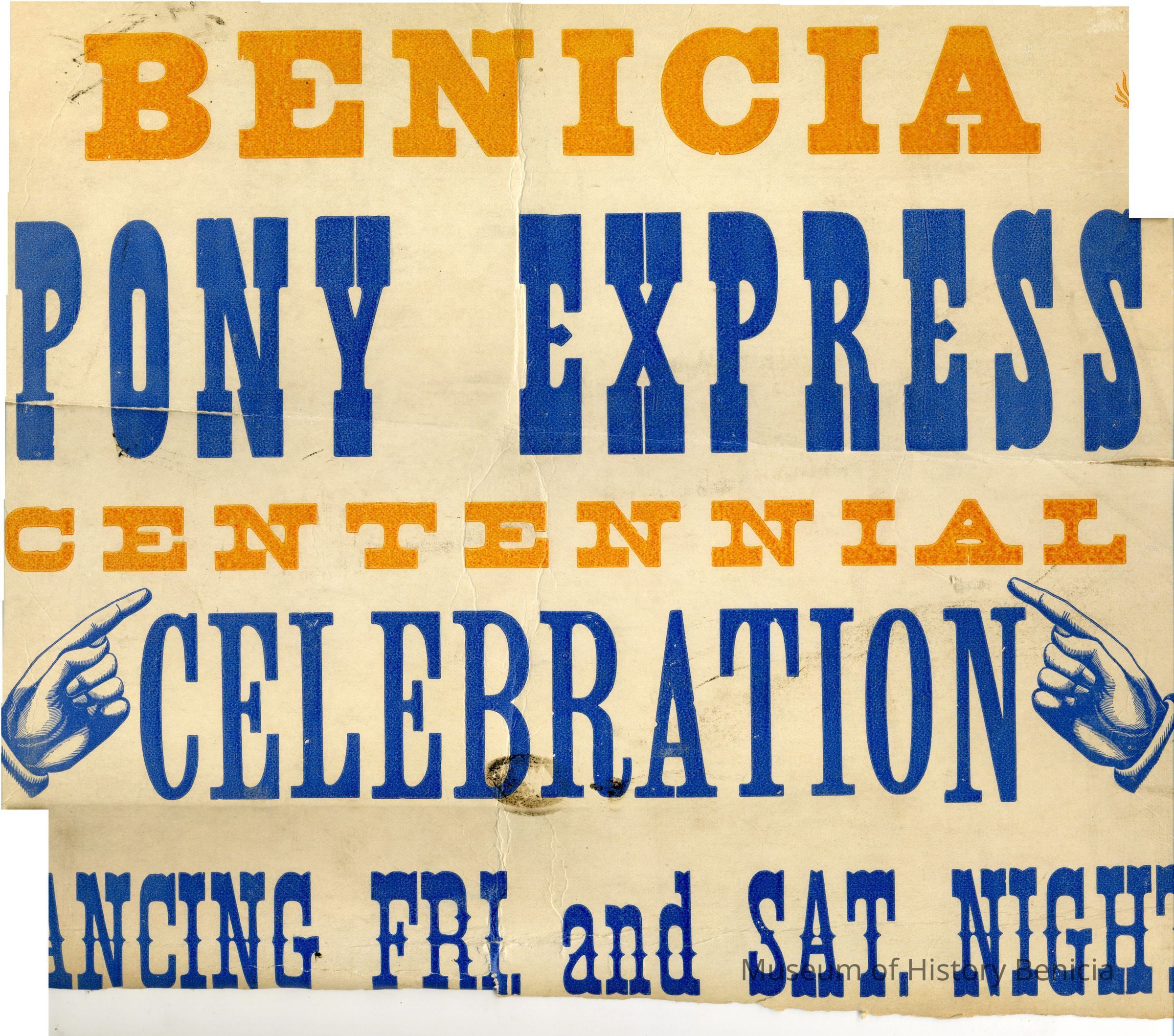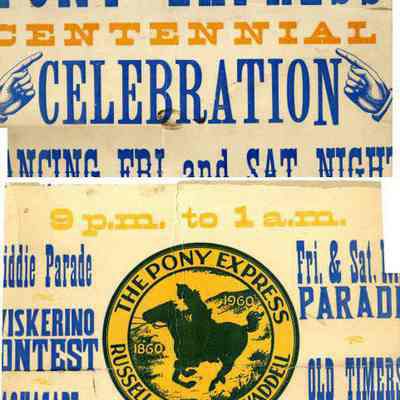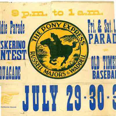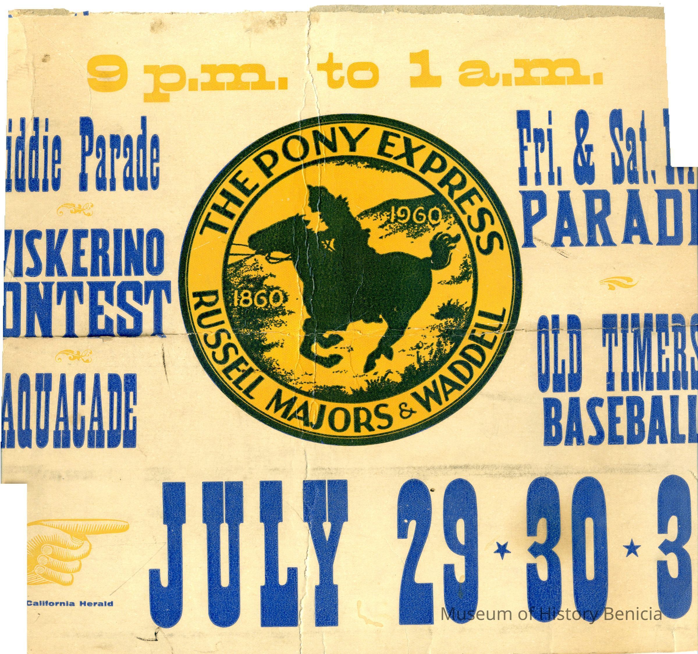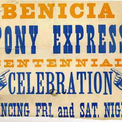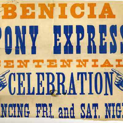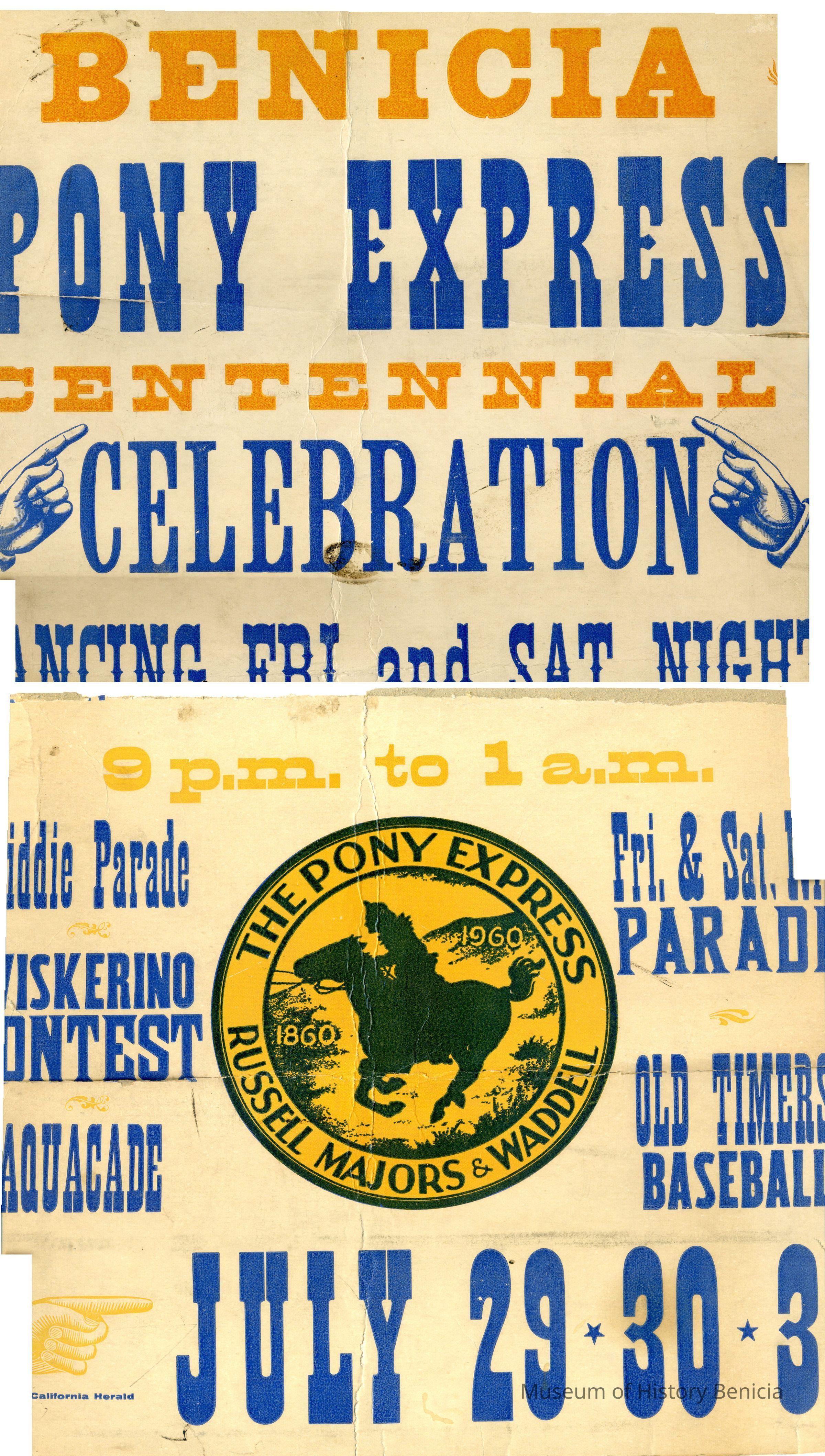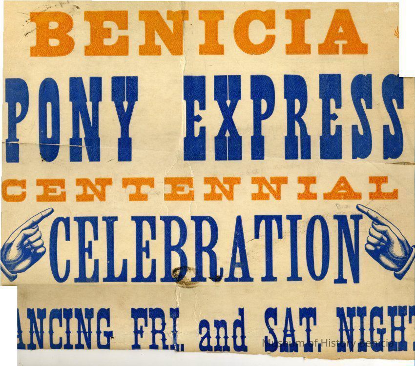 Benicia Pony Express Centennial Celebration poster. The poster is about 24 x 14 inches. It is split in the middle.