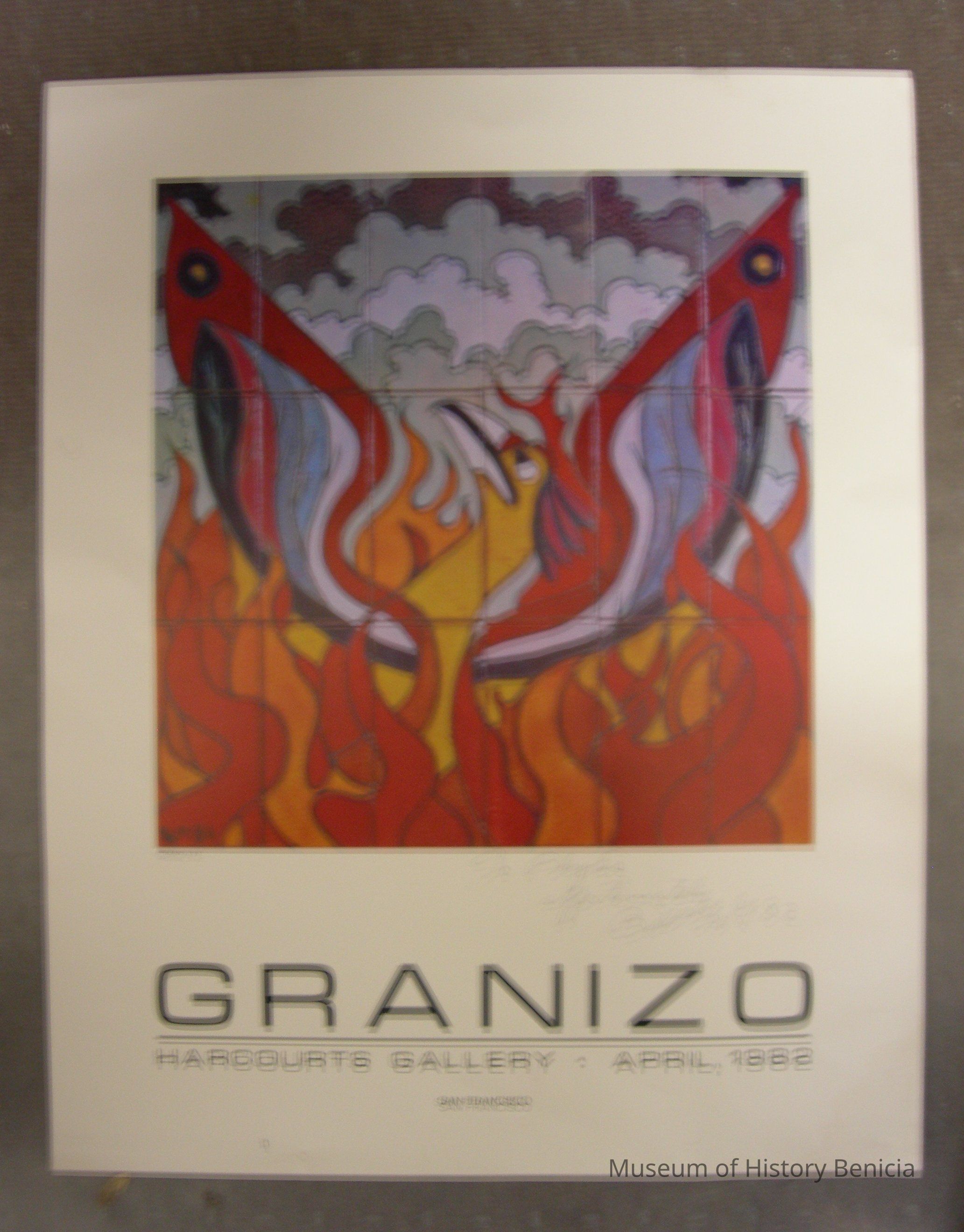 Poster advertising a Granizo exhibit at Harcourts Gallery in San Francisco in April 1982.