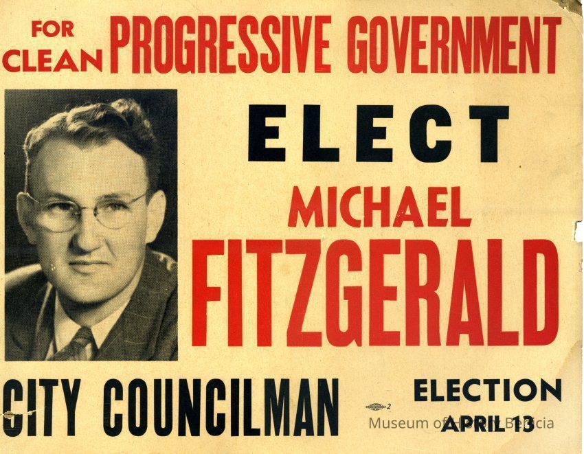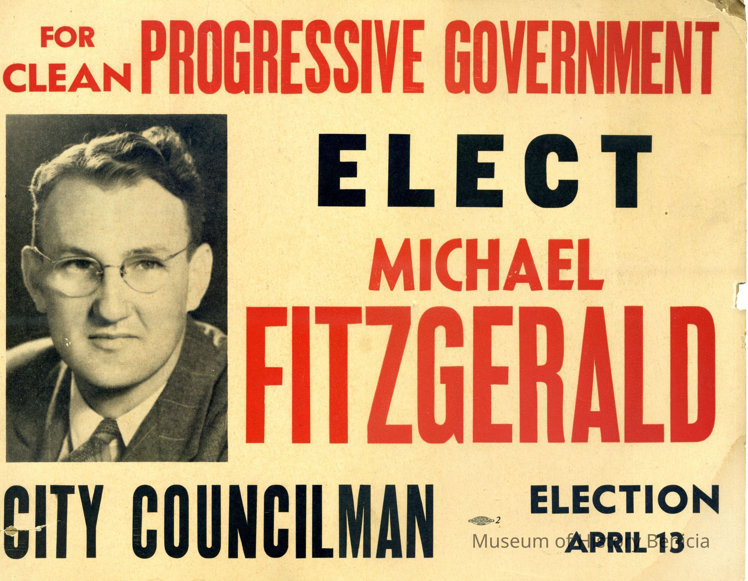 This is a political poster for Michael Fitzgerald running for City Councilman. This is probably in Benicia and about 1948 based on other posters found with this one.Collection