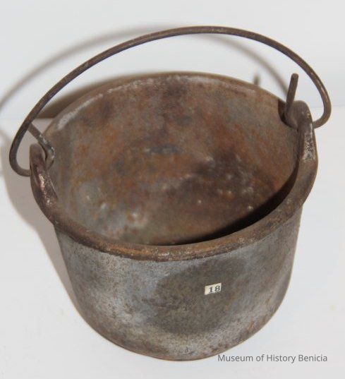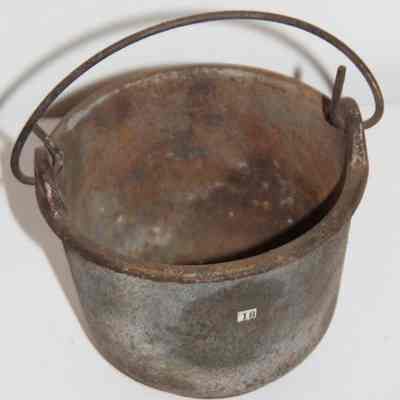 small iron pot with a wire handle.