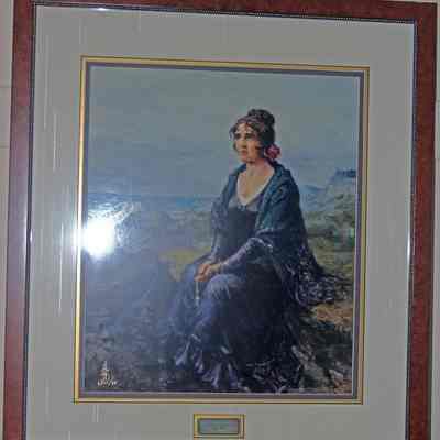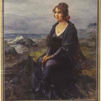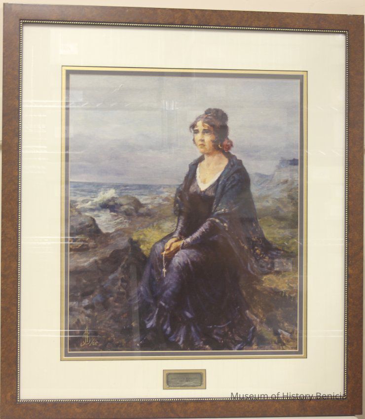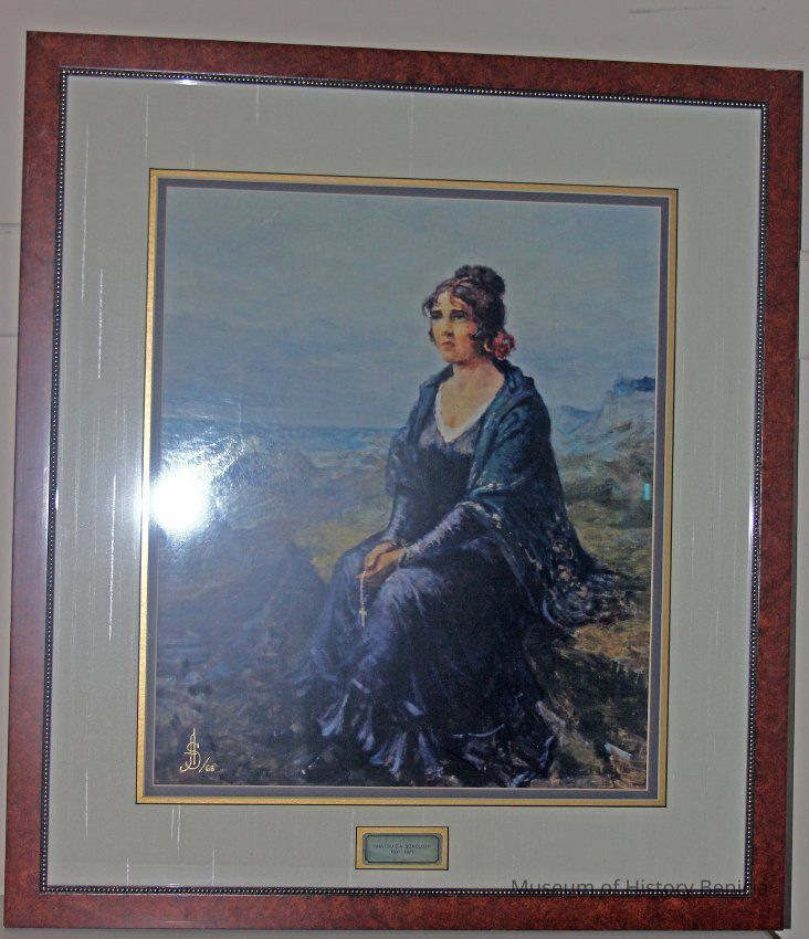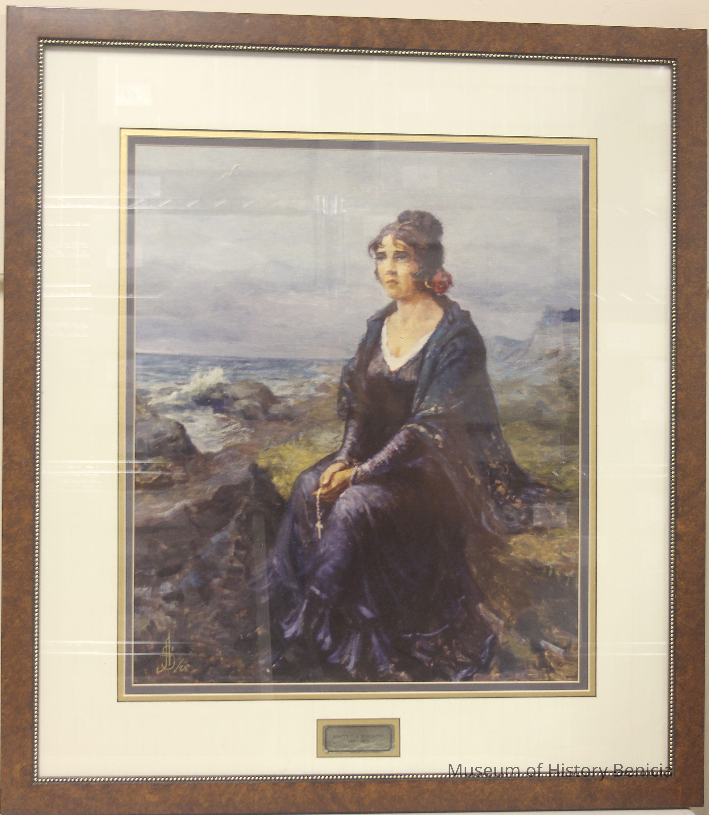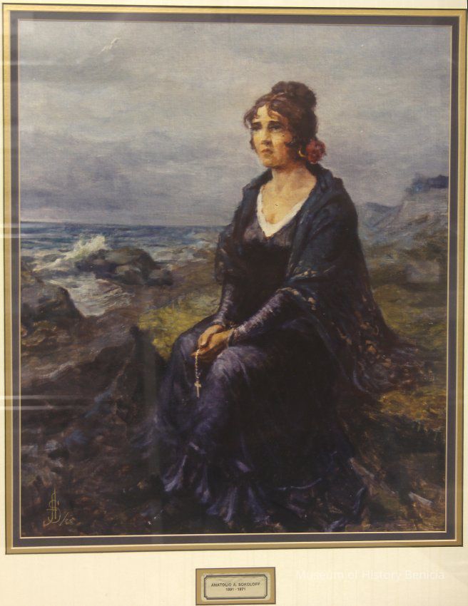 Framed print, 1962. By Anatolio Sokoloff, 1891-1971, the donor's father. Conchita Arguello, waiting for the return of her fiancee, Count Nikolai Petrovich Rezanor, who was an emissary for the Russian Tzar. Framed by donor.Collection
