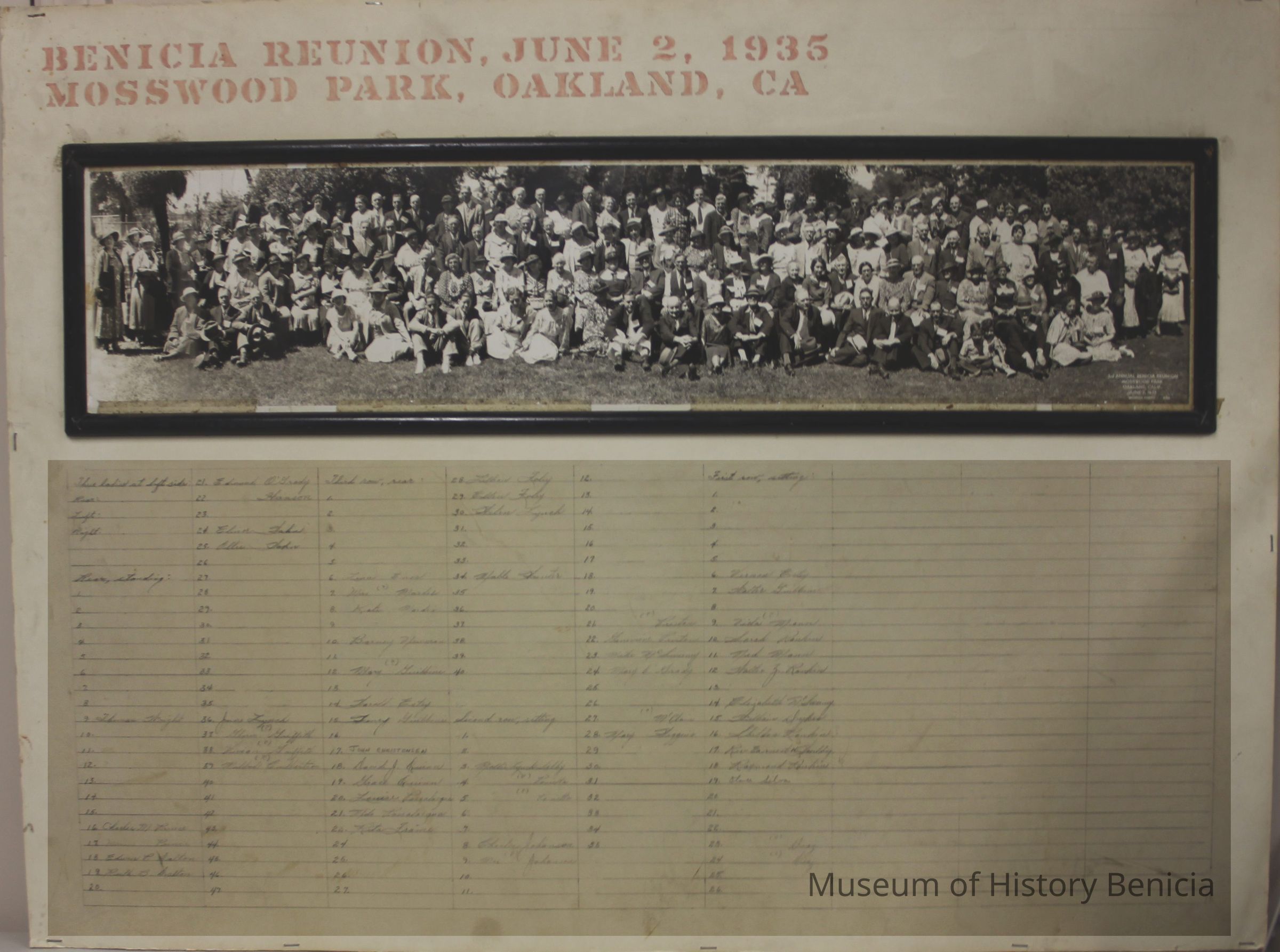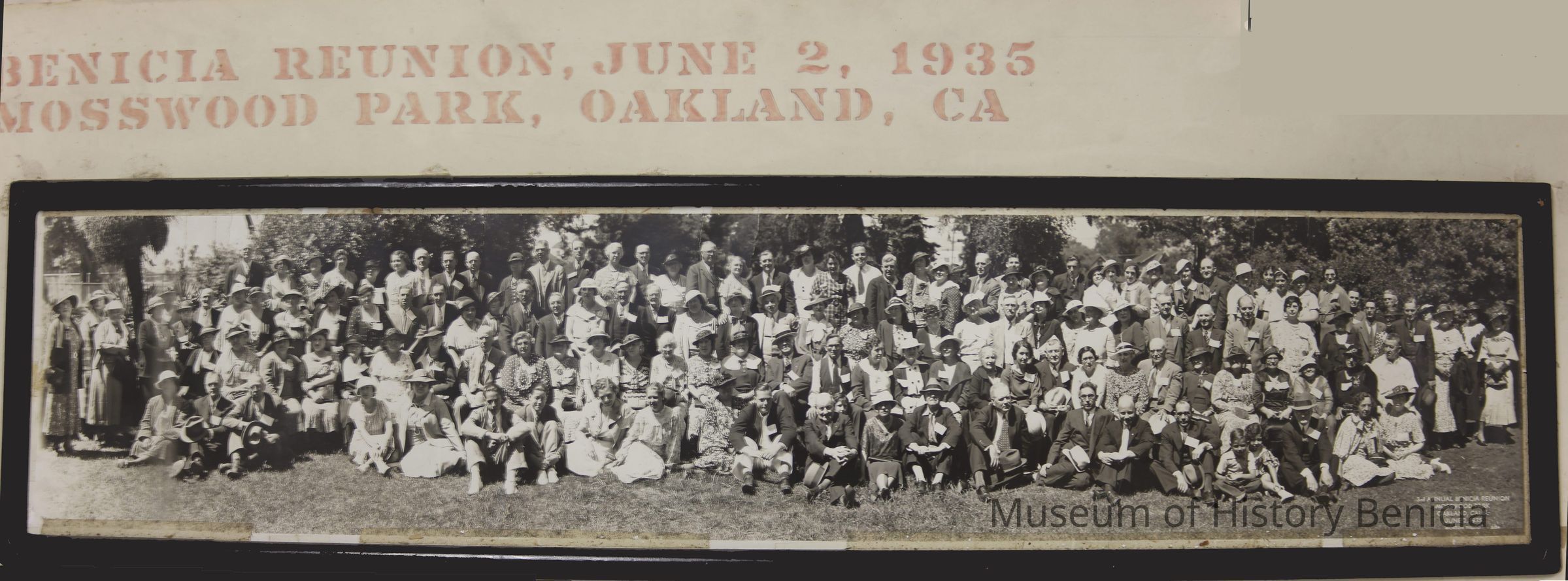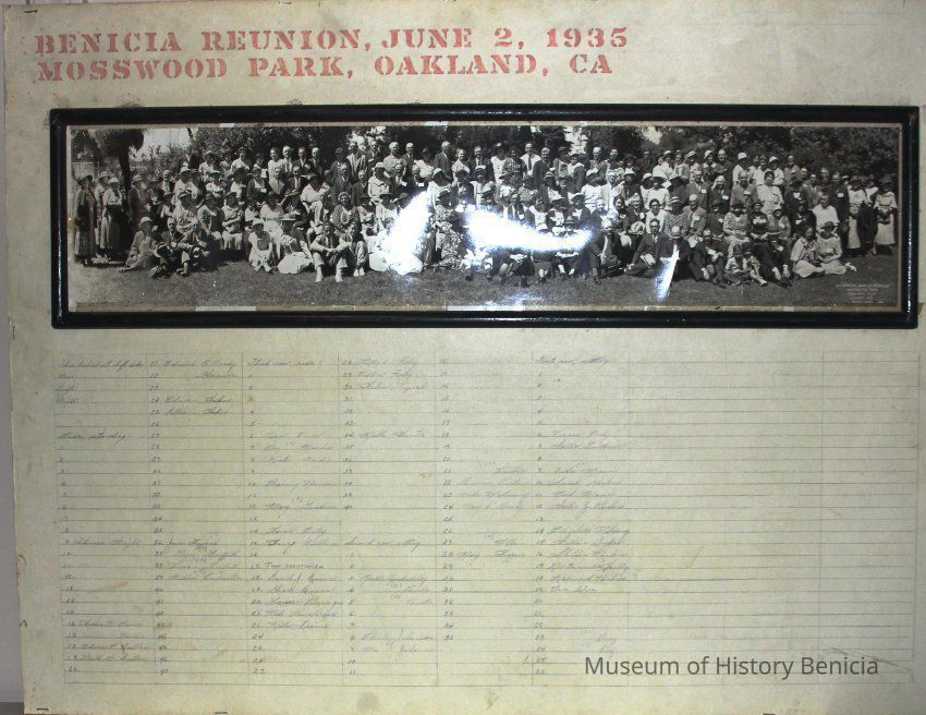 Third Annual Benicia Reunion, Mosswood Park, Oakland, June 1935. (similar photo numbered P2011 - BHM 92.35.15)