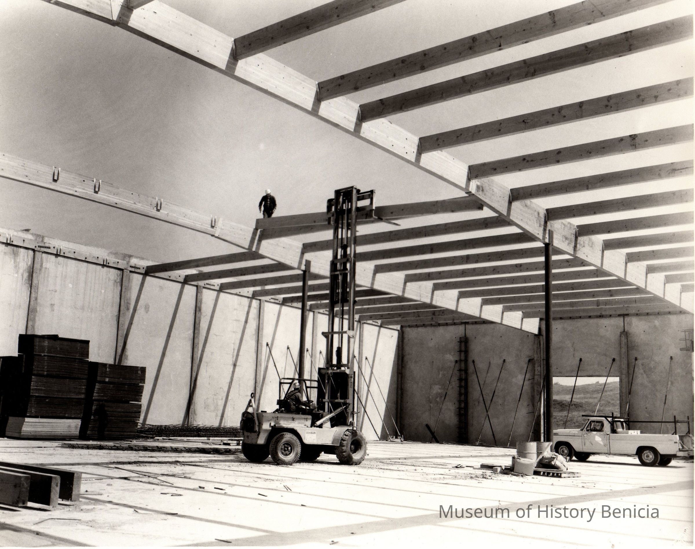 B/W photograph of new warehouse construction in the Industrial Park