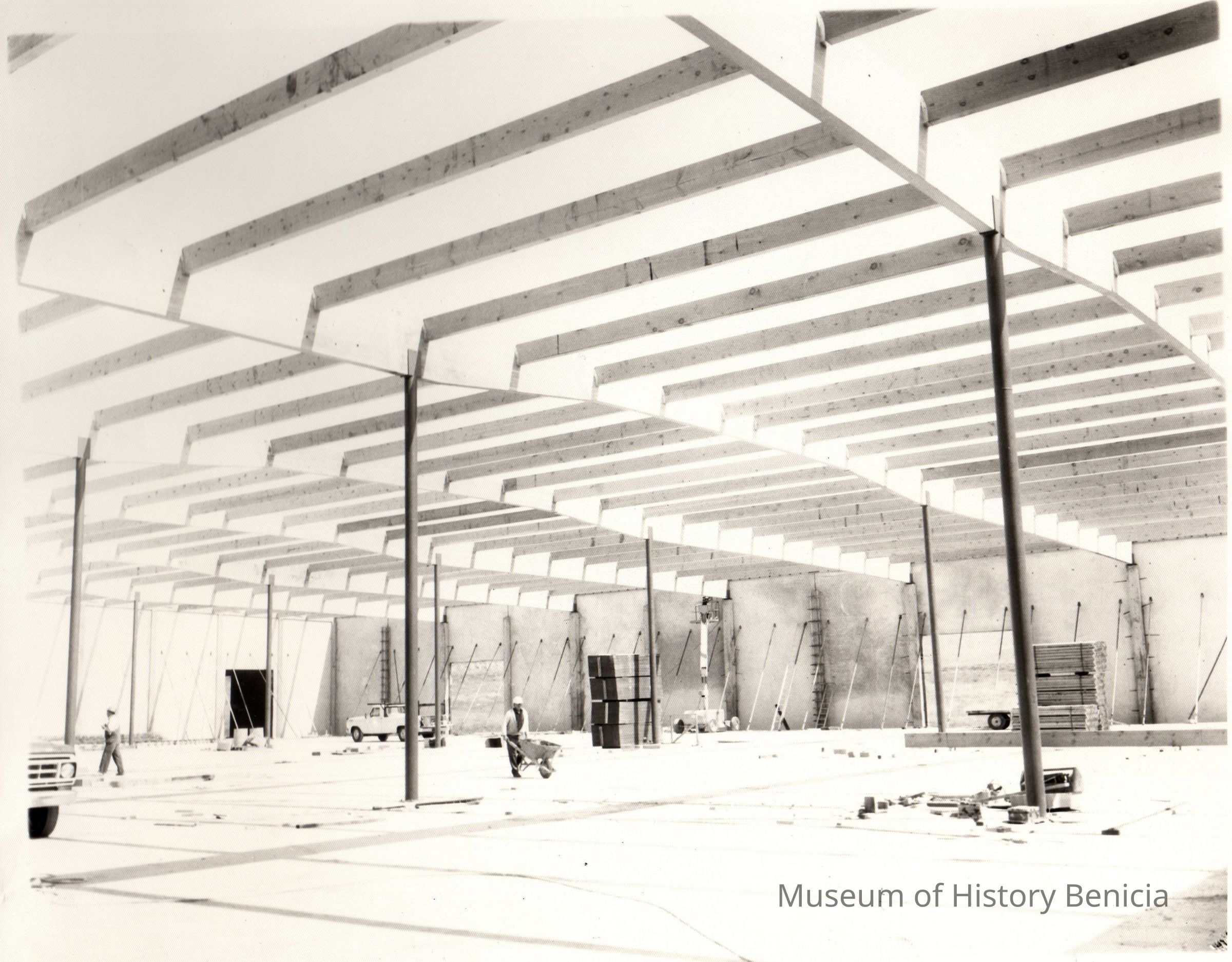 B/W photograph of new warehouse construction in the Benicia Industrial Park.