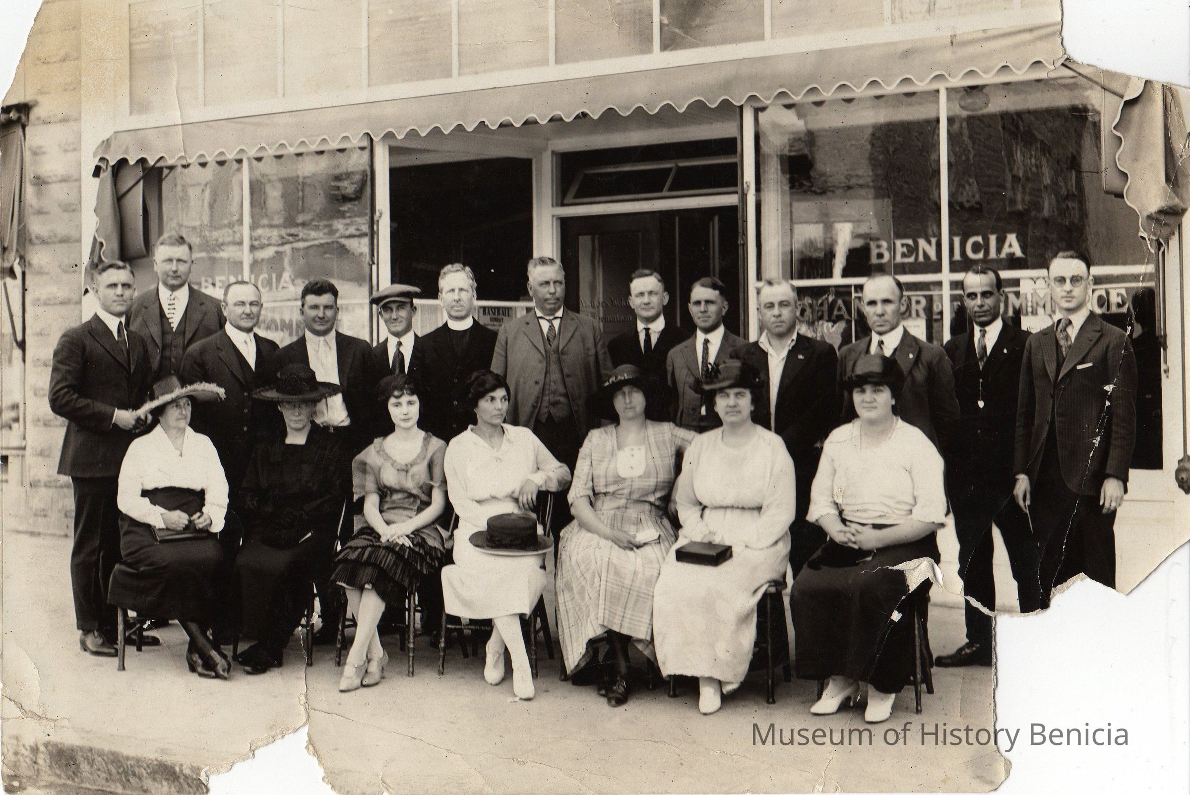 They are posed in front of the Benicia Chamber of Commerce Building so they could be members of that organization. The building appears to be south of the Royal Bakery Building.Collection