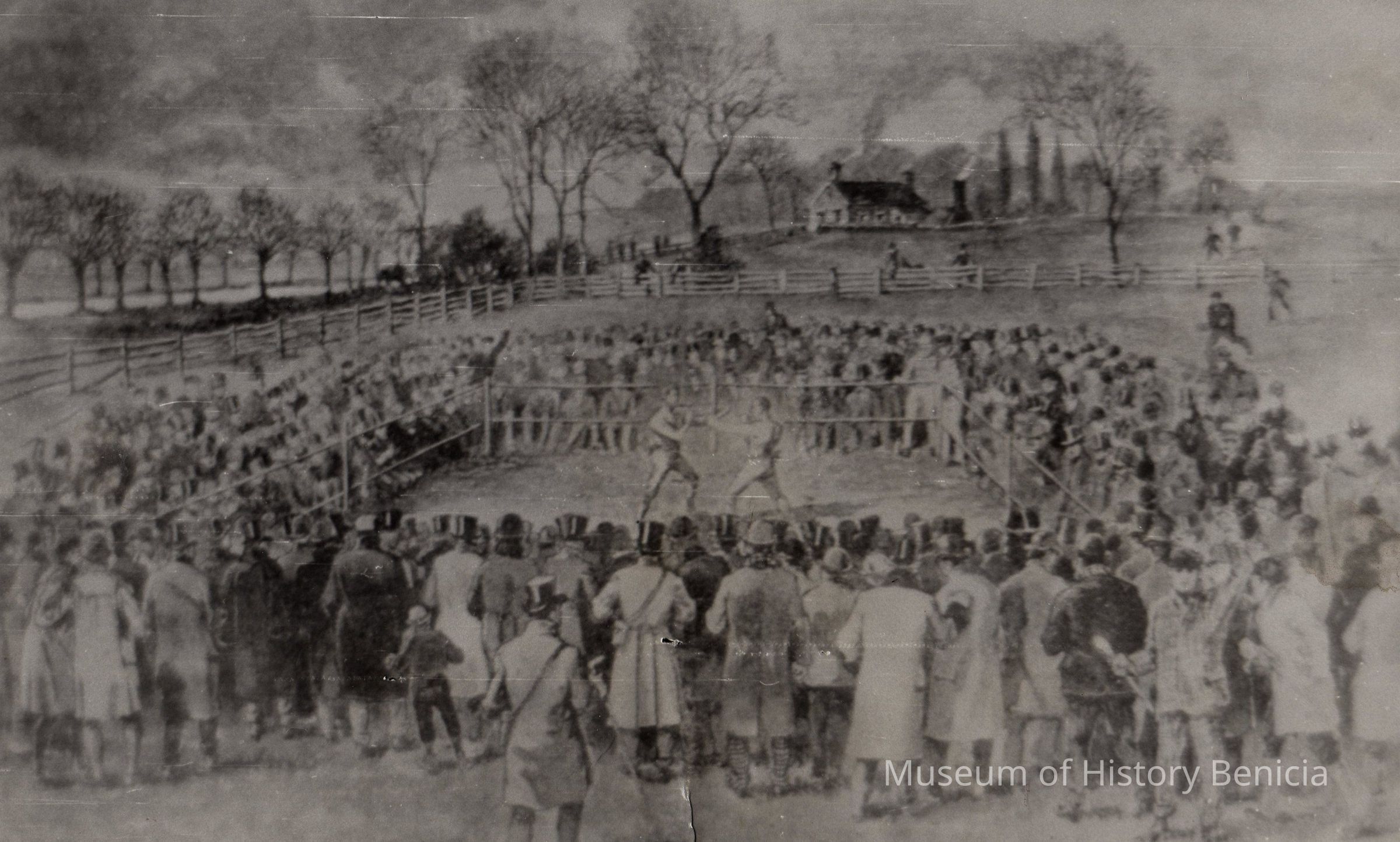 B/W copy: Scene of a fight between John Heenan and possibly Tom Sayers.