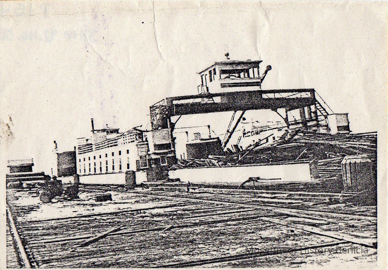 B/W grainy photograph cut from some printed matter: Dismantling of the "Contra Costa" in 1931.