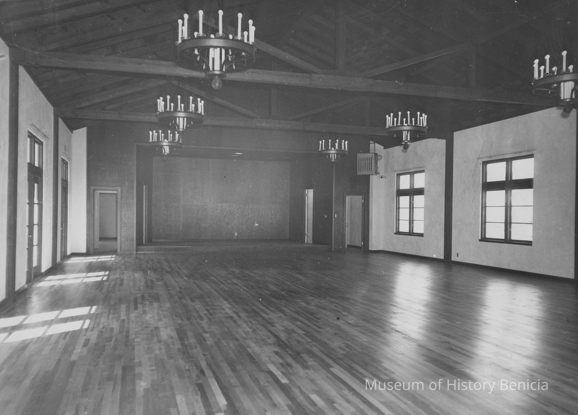 B/W photograph: interior view of the Benicia Veteran's Hall, on First Street between East L and East K Streets. upper floor?