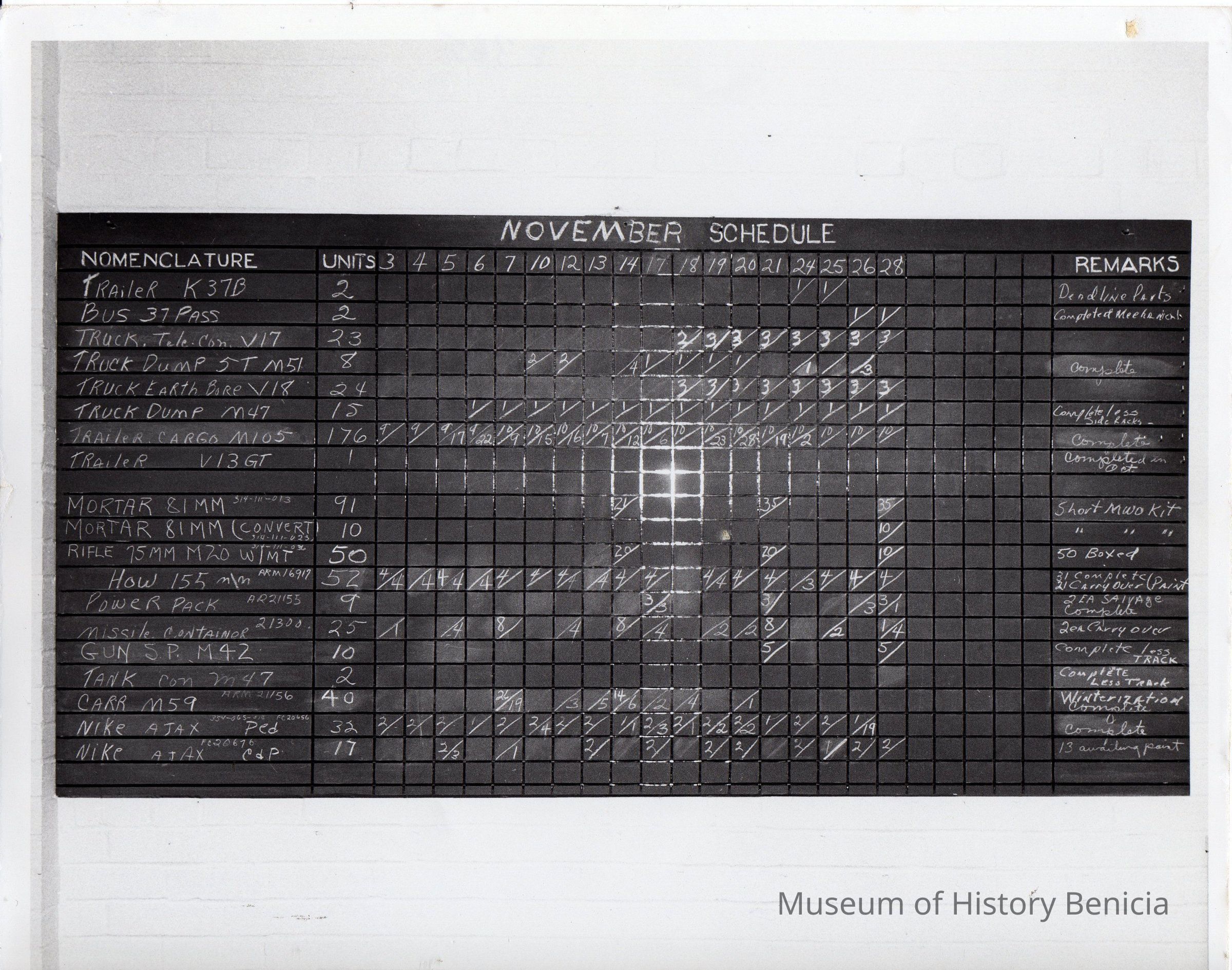 November schedule, Benicia Arsenal.