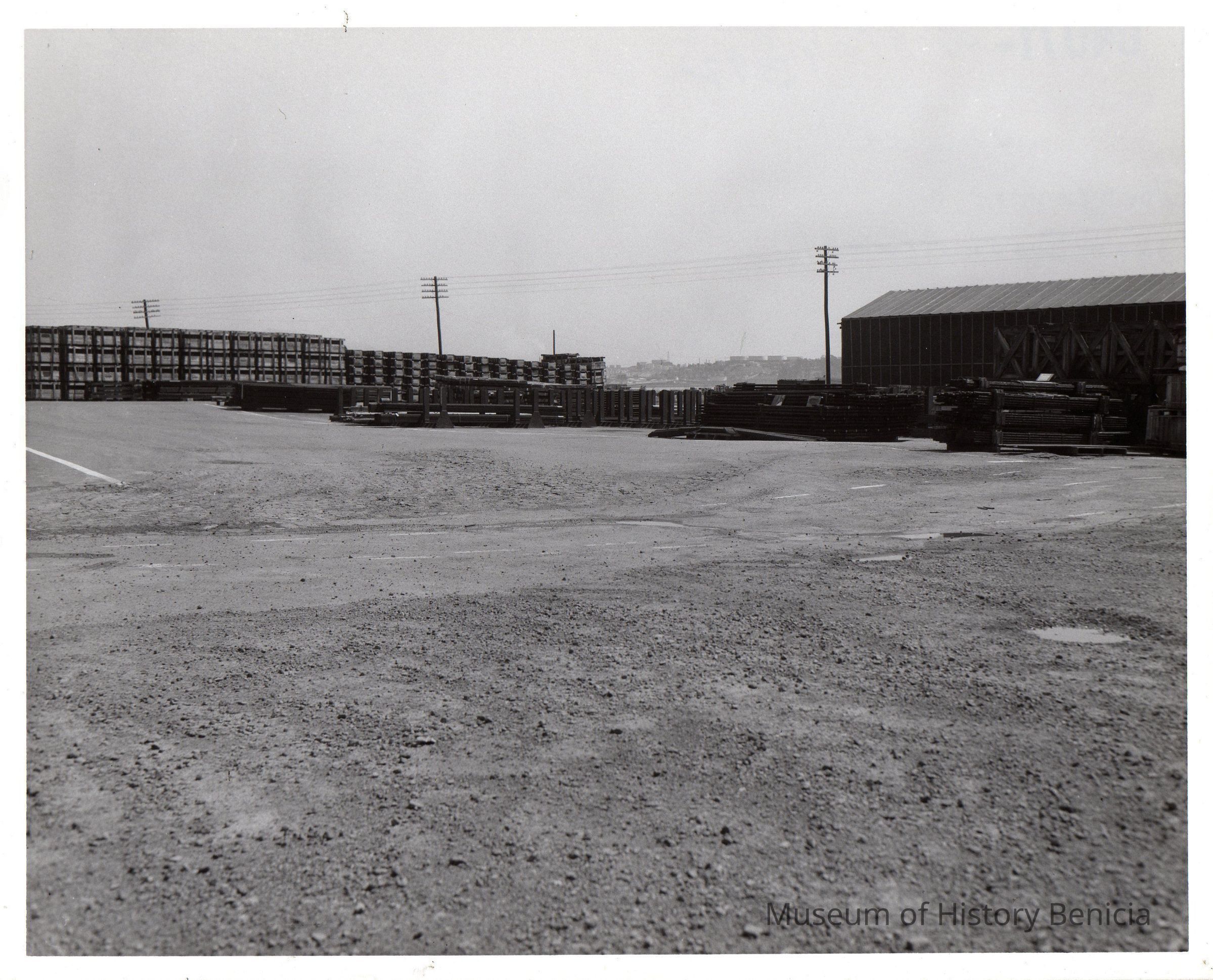 Storage area, lower south of Benicia Arsenal. B/W photo.