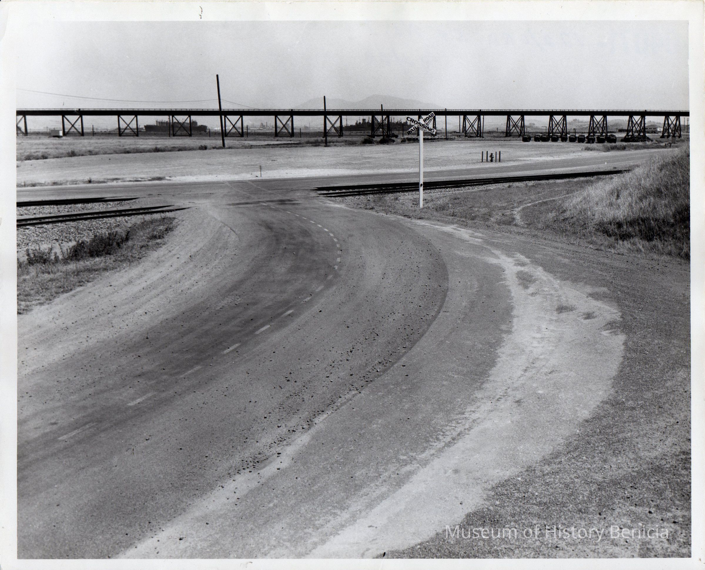 Park Road and Bayshore, northern area of Benicia Arsenal, June 9, 1959. Black and white photo.