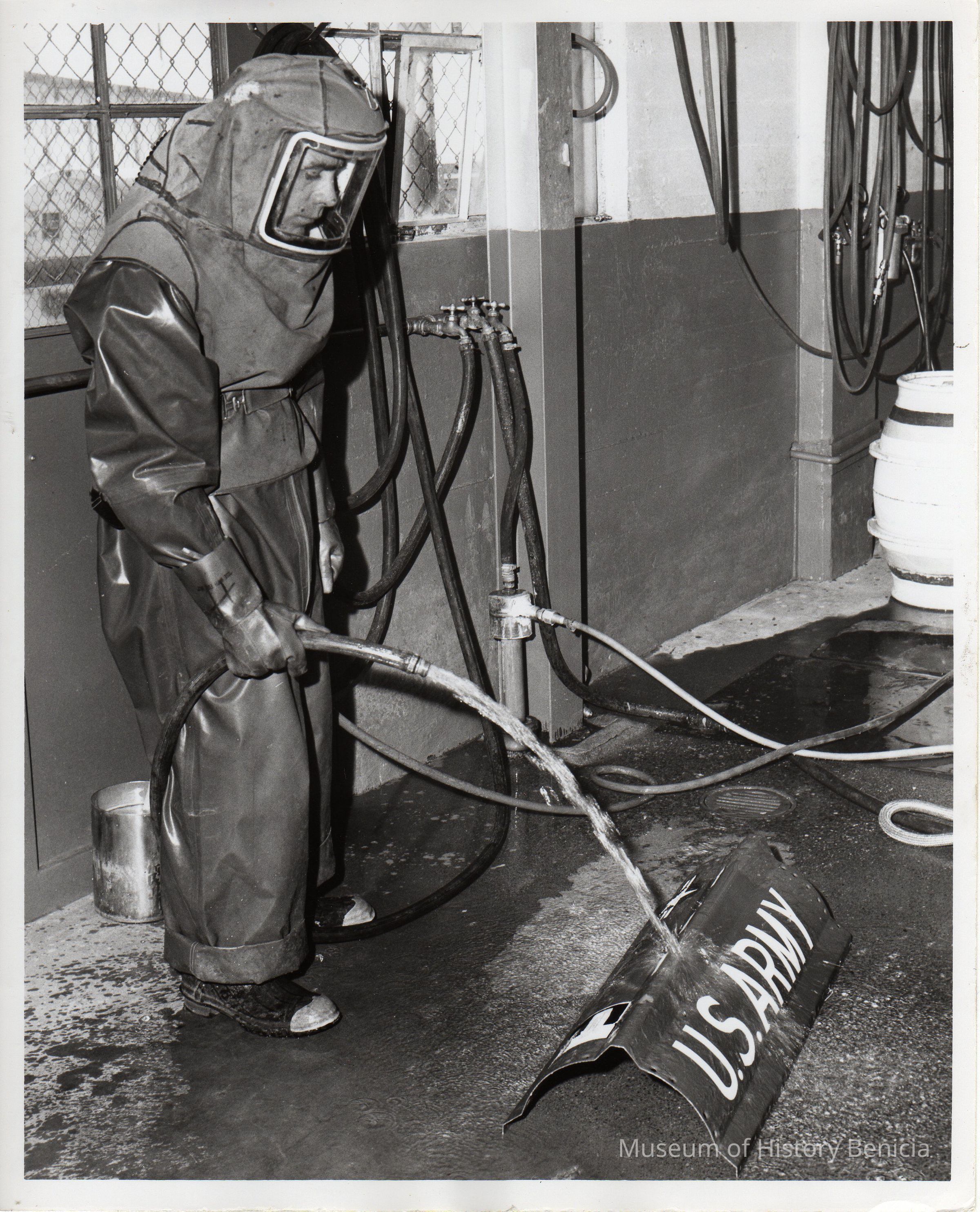 Missile decontamination, Benicia Arsenal. B/W photo.