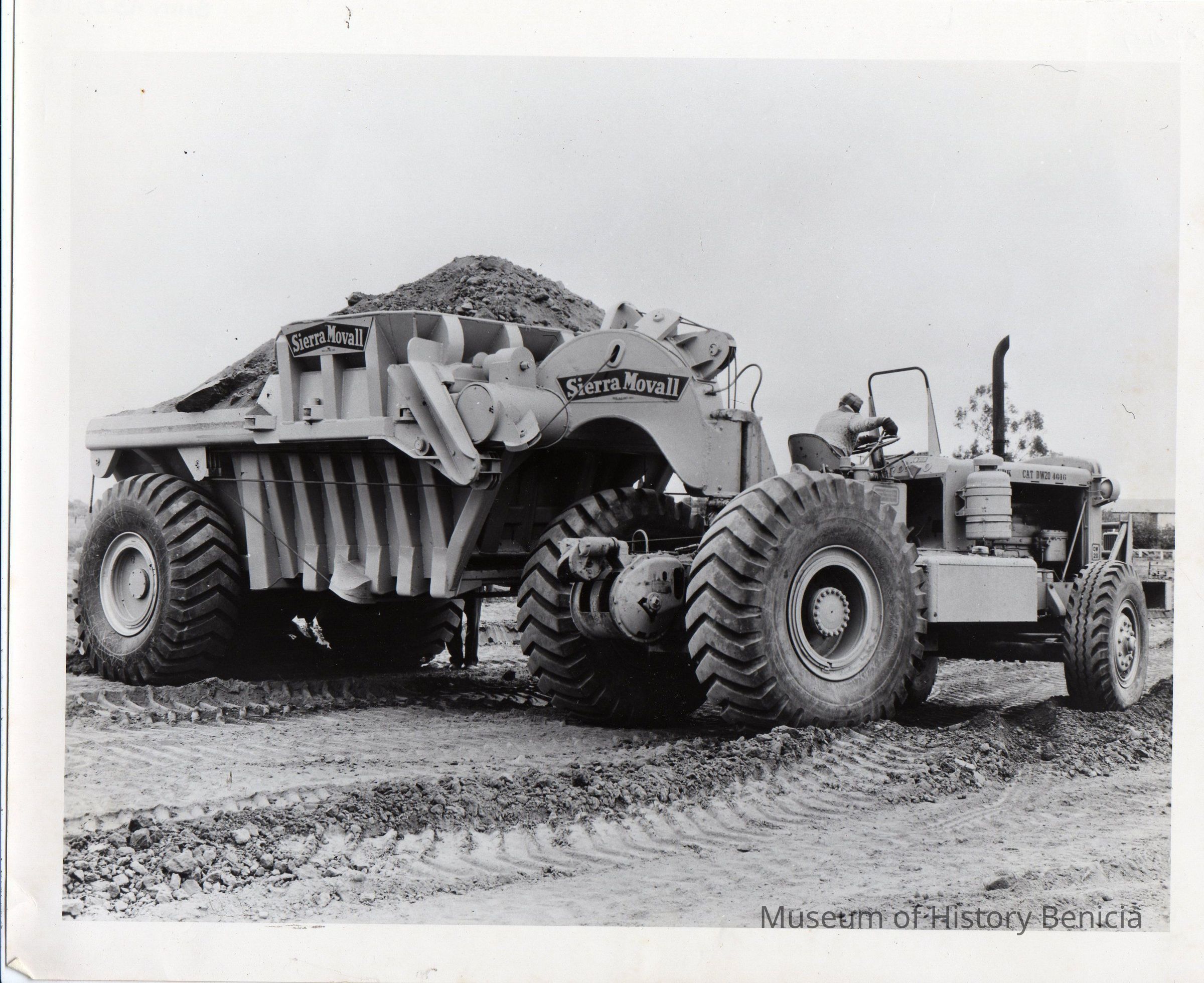 B/W photo of Sierra Movall earth-moving equipment.