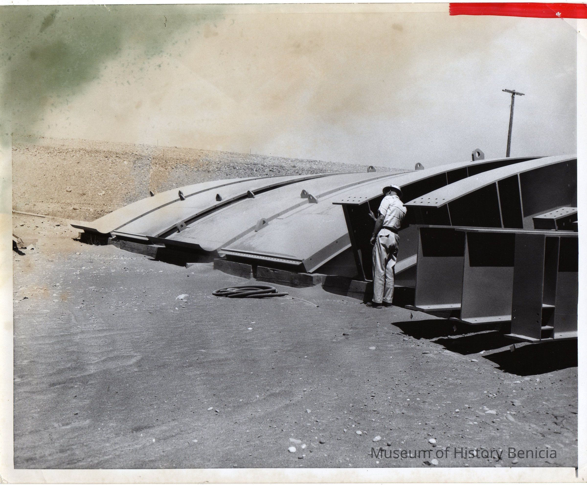 Spillway gates (tainter gates) for Priest Rapids Dam, WA. Pacific Coast Engineering Co. B/W photo.