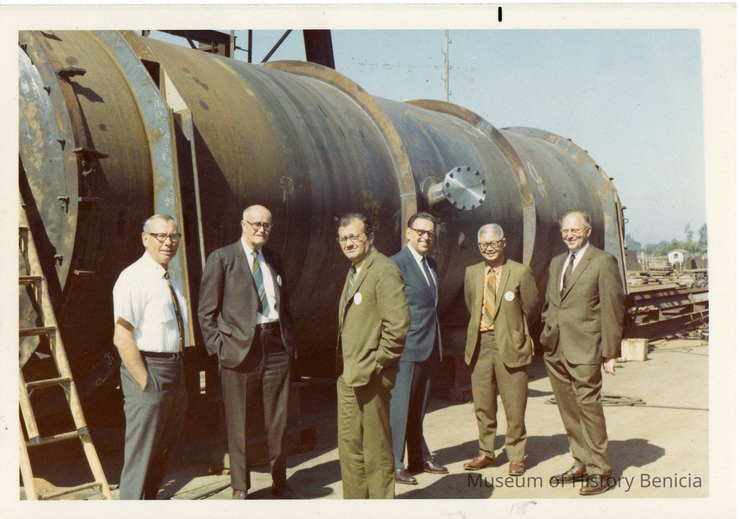 Pressure vessel for Standard Oil. Left to right: Manual Christo, Four Standard Oil and Yuba salesman. Color photo.