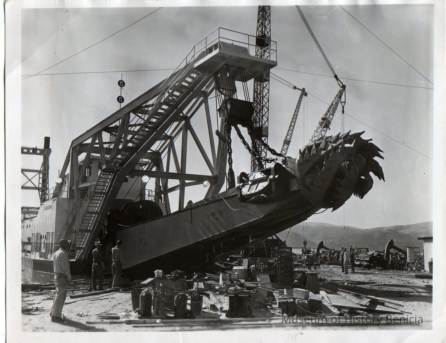 Suction intake with large rotary auger. B/W photo.