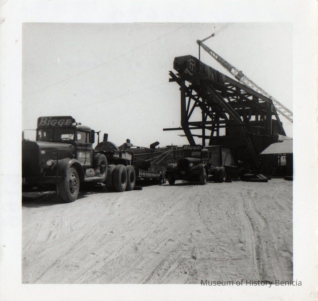 Biggie trucks hauling parts to the dredge construction site.
