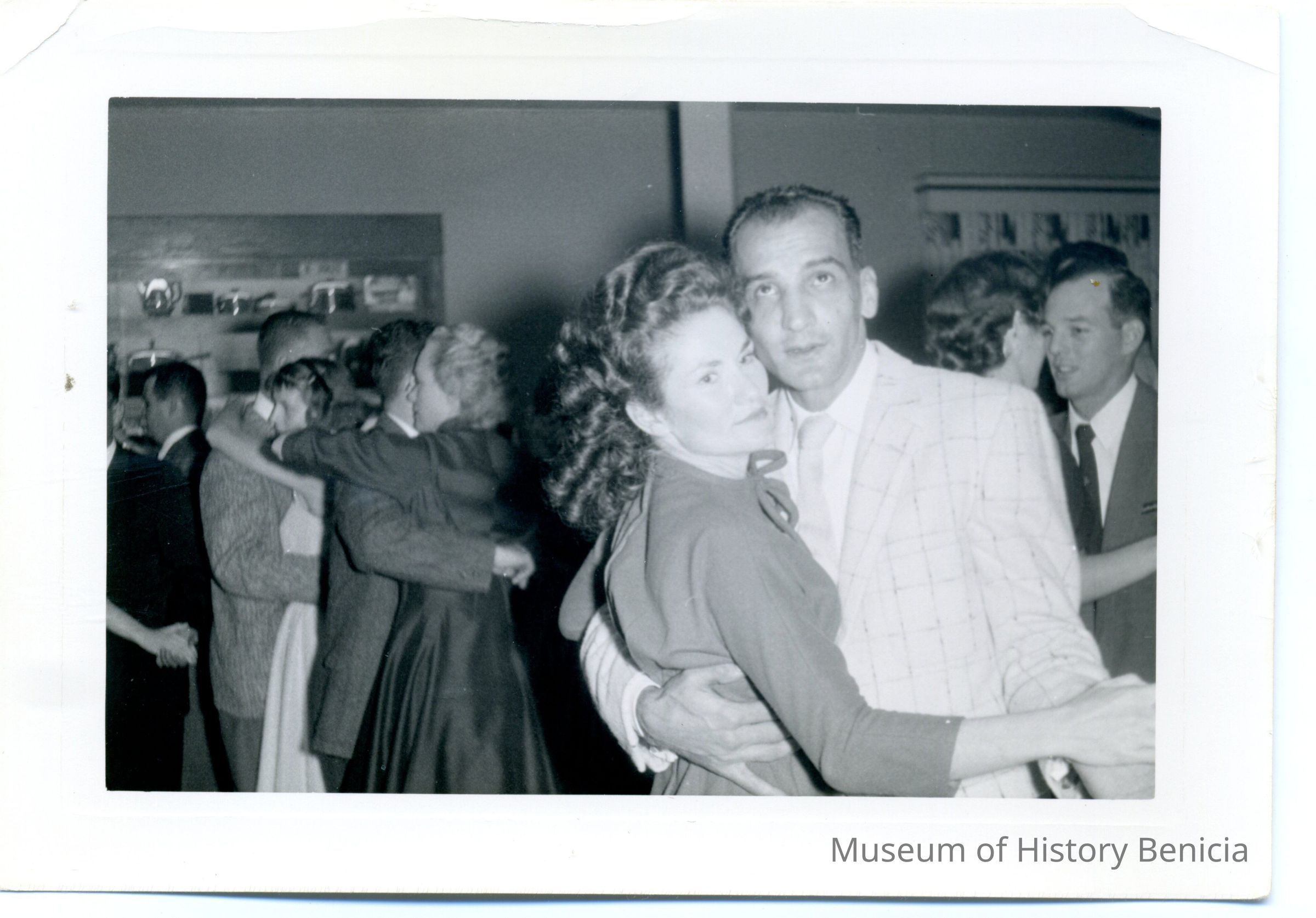 Photograph of William Chrisogelos and friend at Apprenticeship Program graduation ceremony, 1958.