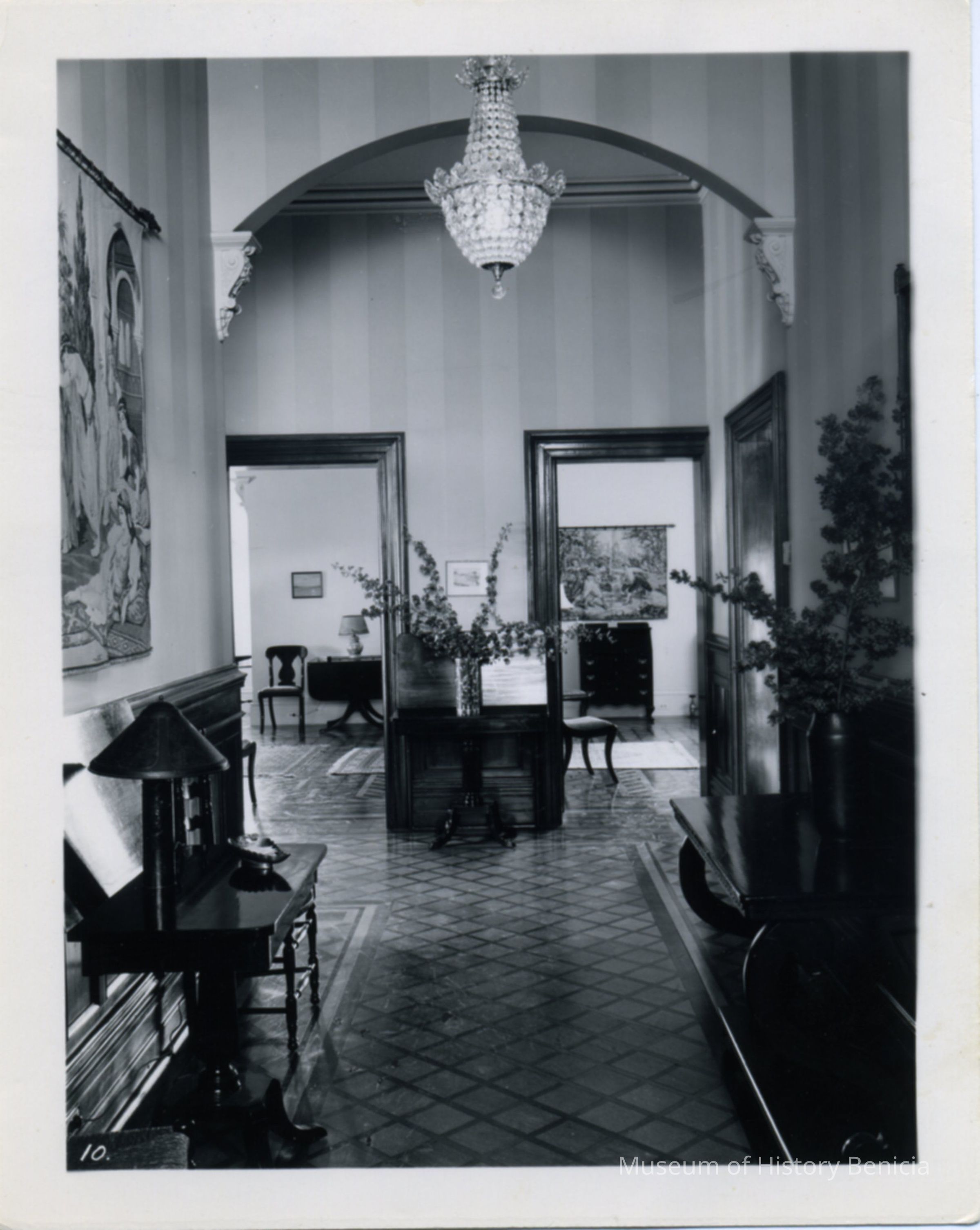 B/W interior views of the Commandant's Residence. Entrance shows 2 large rooms at the west end which are living rooms.