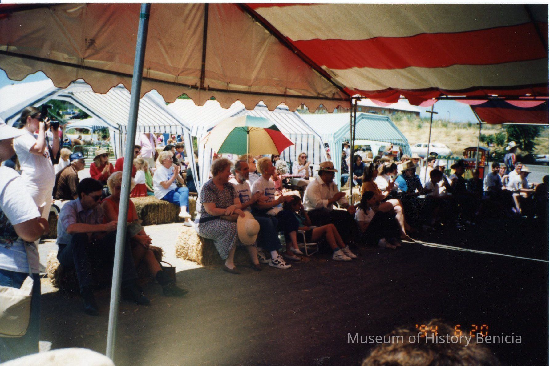 Father's Day Barbecue, 1994. Mary Frances Kelly (left side), Larry Fullington (center), Kate McNamara (right side). Color photo.