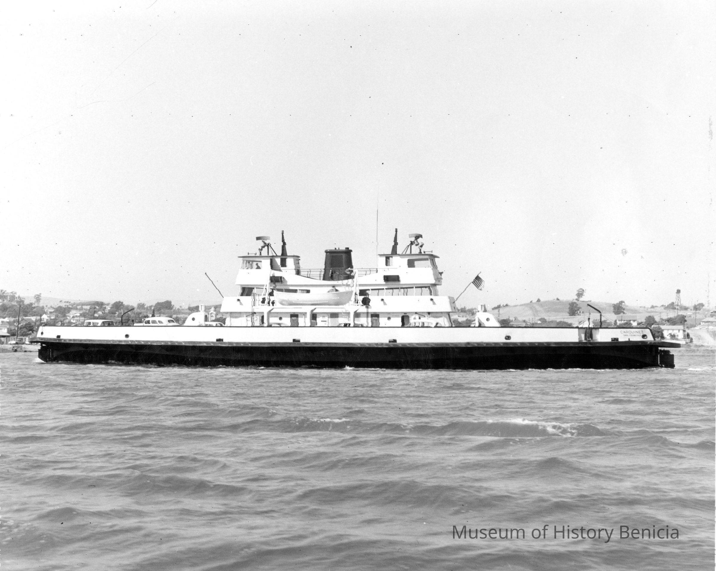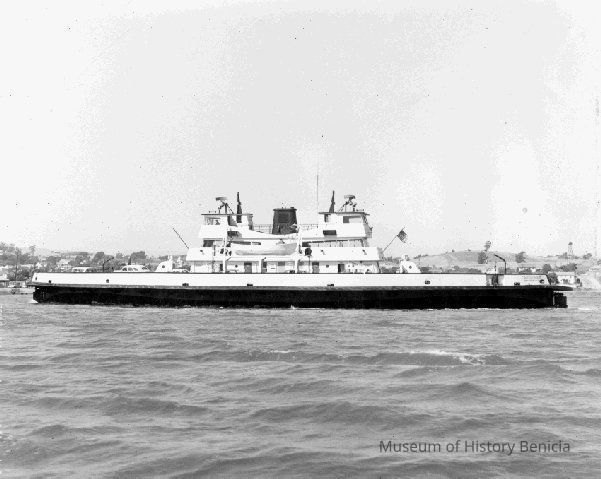 B/w photograph of the last ferryboat to run between Benicia-Martinez. The Lenoir Miller Collection