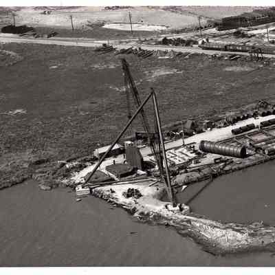 Blast valve gates for missiles shown under 125-ton crane legs.