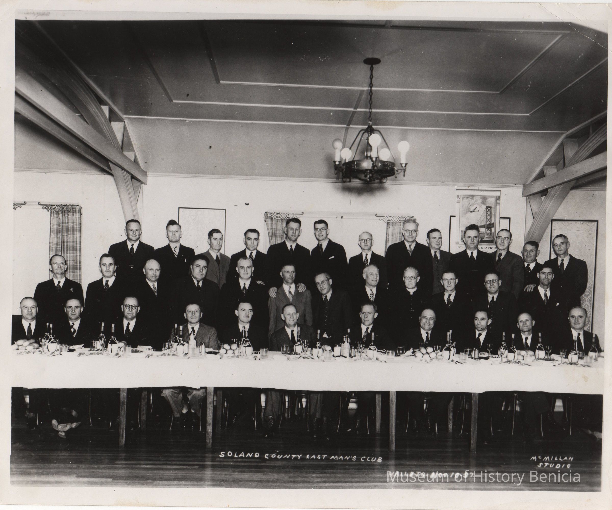 3 rows of men at a banquet table. "Solano County Last Man's Club/Vallejo Nov. 10.37/McMillian Studio" across bottom. "1937" in ink on back B/W photoCollection