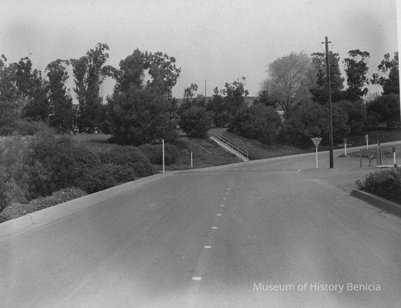B/W photograph: Intersection of Adams and Park Road looking North, Benicia Arsenal