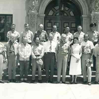 L-R front row: Eddie Scruggs, Carl Rupp, Leldon Sharp, Joaquin Cabo, Henry White, Colonel Lawther, LaRae Kuhn, William Chrysogelos, and Warren Tripp. back row: John Alderdyce, Ronald Broten Ulysses Duke, Floyd Carr, Albert Branson, Mark Davidson, and Vernon Rockey.