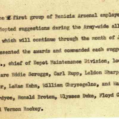 B/W Photograph: First group of Arsenal employees to receive awards under "Project Paydirt".