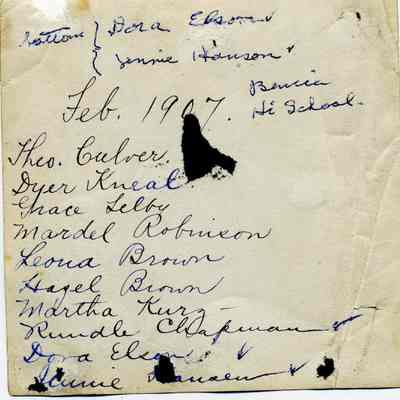 Only Theo Culver is shown as a 1907 Benicia H.S. graduate in Earl Bobitt's book. Jennie Hansen and Dora Elson are 1909 graduates, Dyer Kneale is a 1908 graduate, and Rundle Chapman is 1910Collection