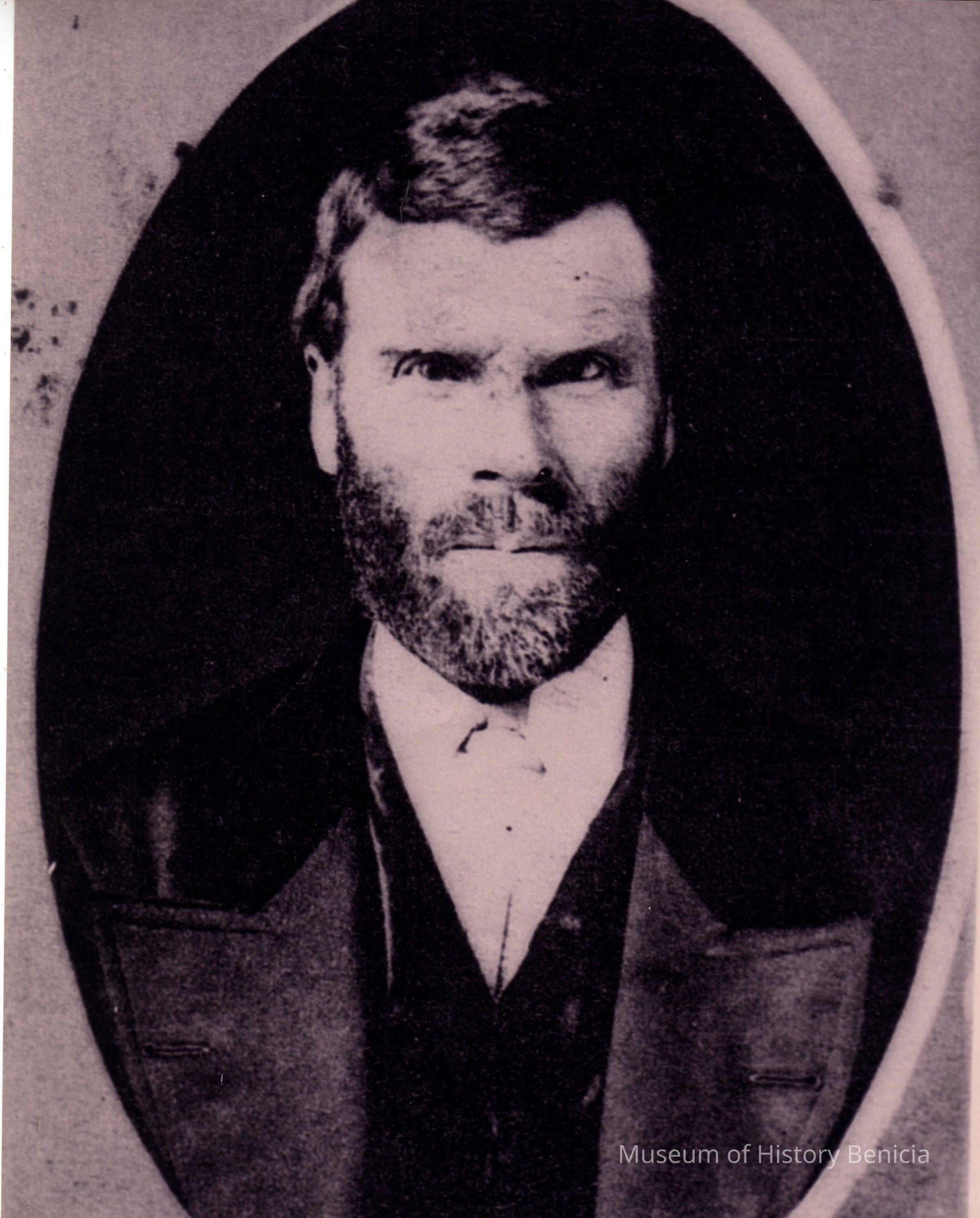 B/W photo of a photo: Corporal George Bell Haigh, California Volunteer 1864-5. He was mustered in at Benicia Barracks and discharged there. Short Biography of Haigh in notes on back of photo.Collection