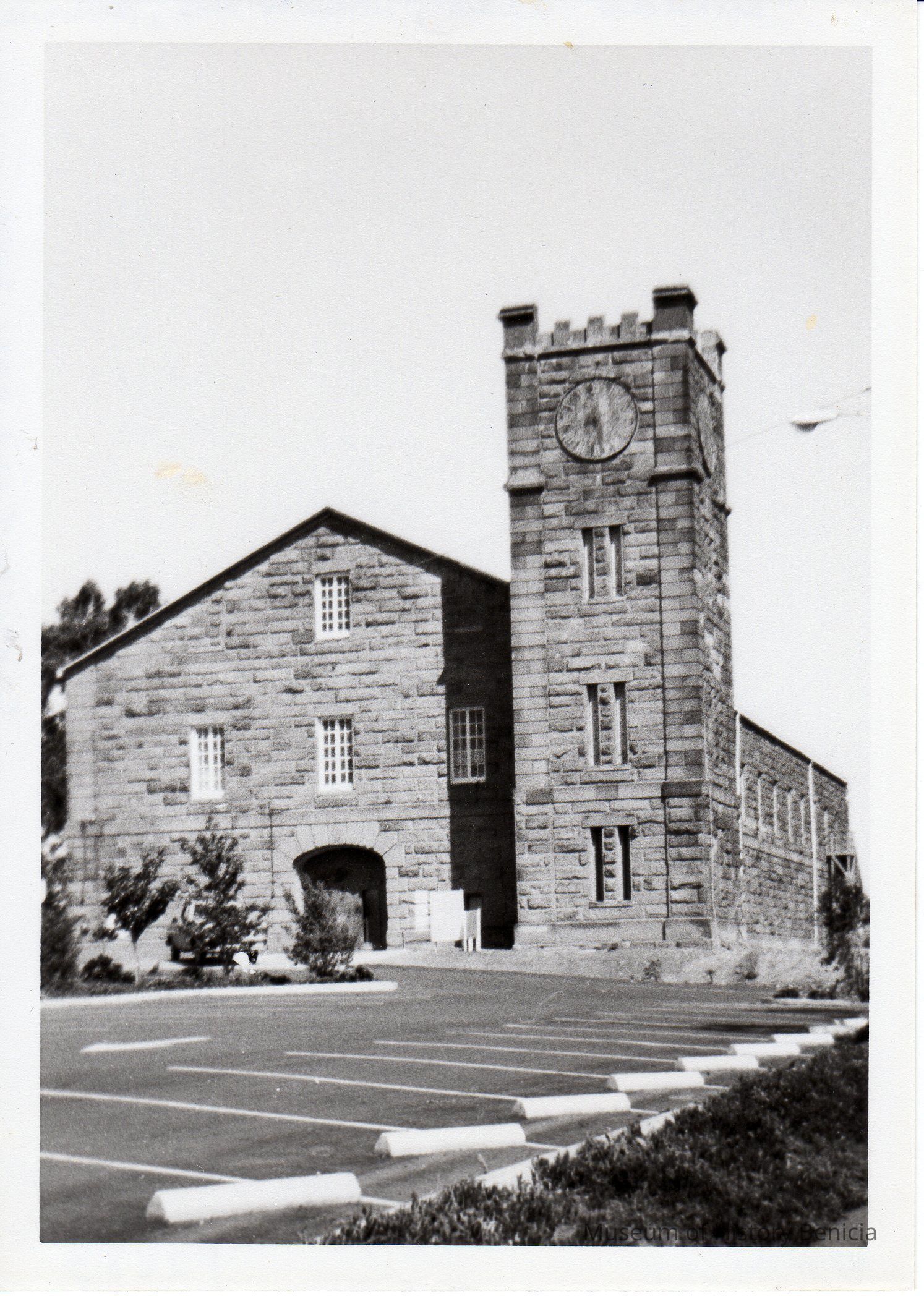 B/W photo of Clock Tower front from southwest. Photo was in brown cardboard mat--thrown away.