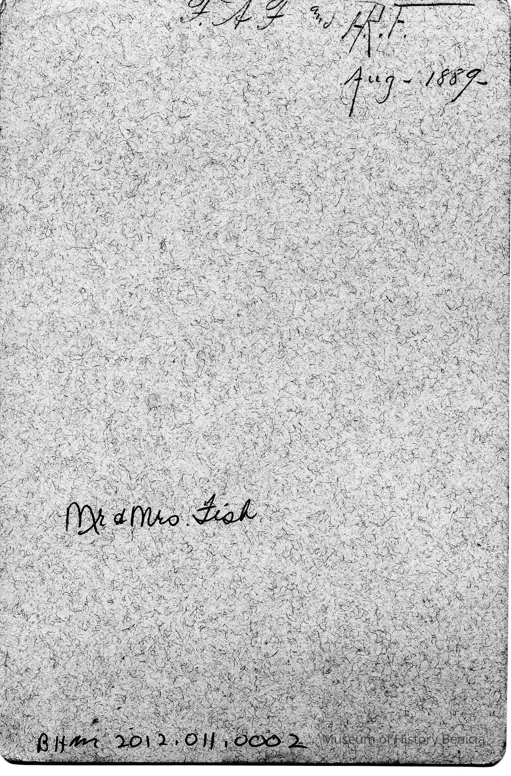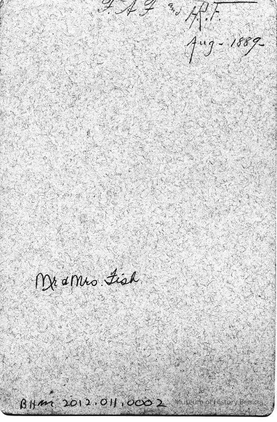 Photo of Mr & Mrs Fish. The back says "F.A.F and H.R.F Aug 1889". I assume this refers to Franklin Fish and Henrietta Riddell-Fish.Collection