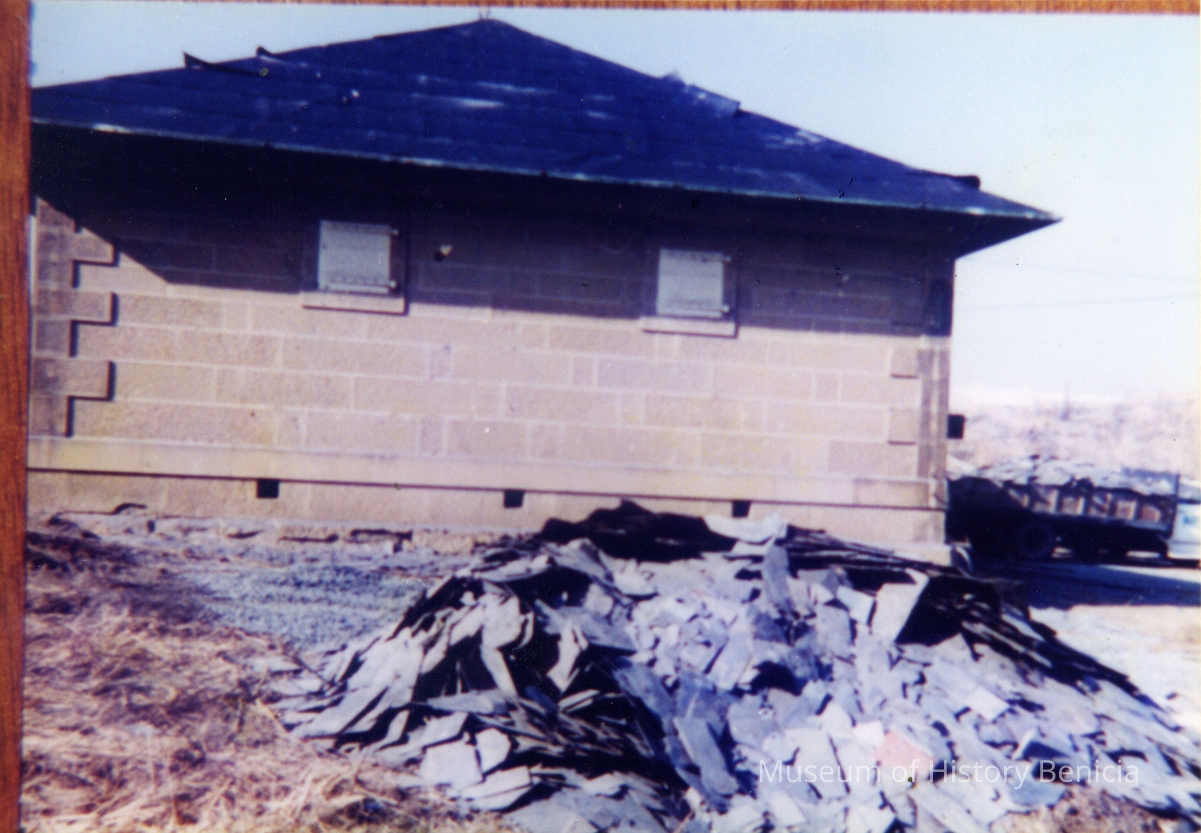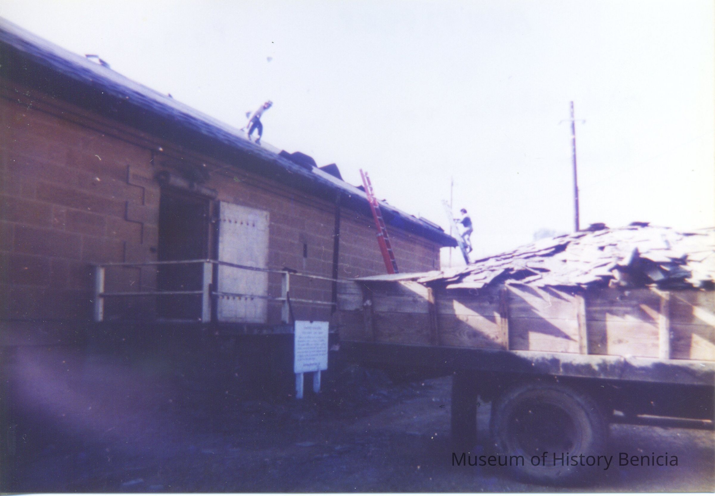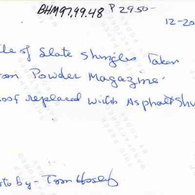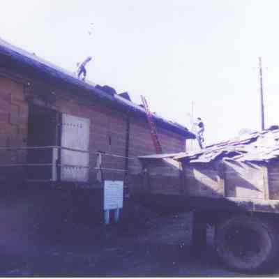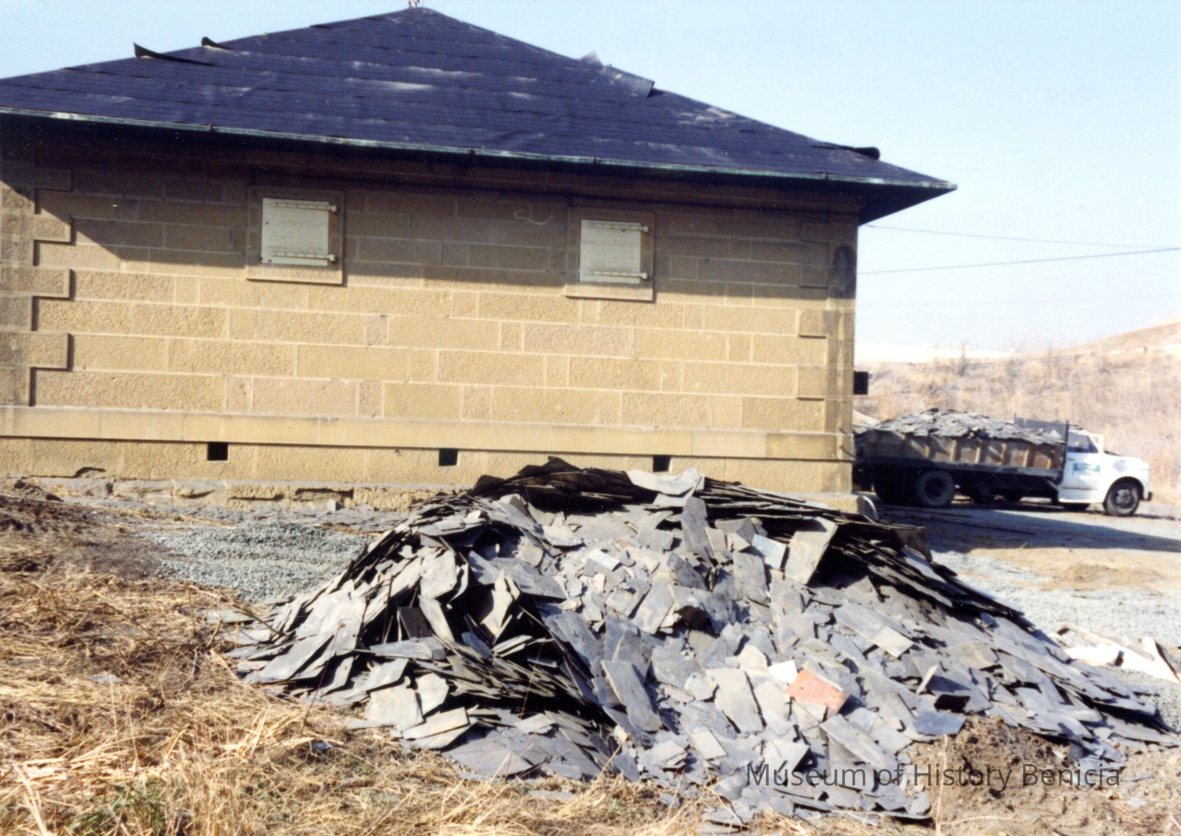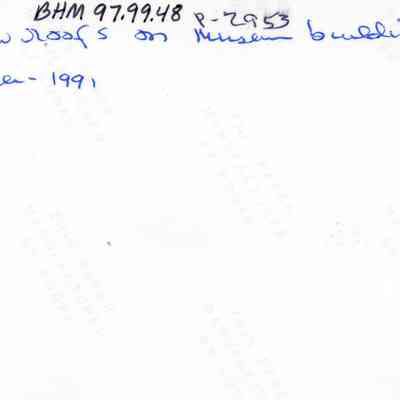 Ten photos of Museum building rehabilitation. New roofs, drainage and stairs (Bldg. 7). Work completed in April 1991. Specific information is listed on back of each photo.Collection
