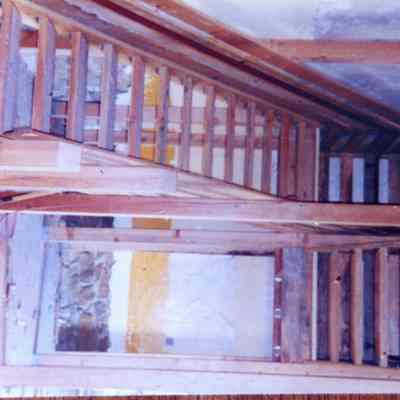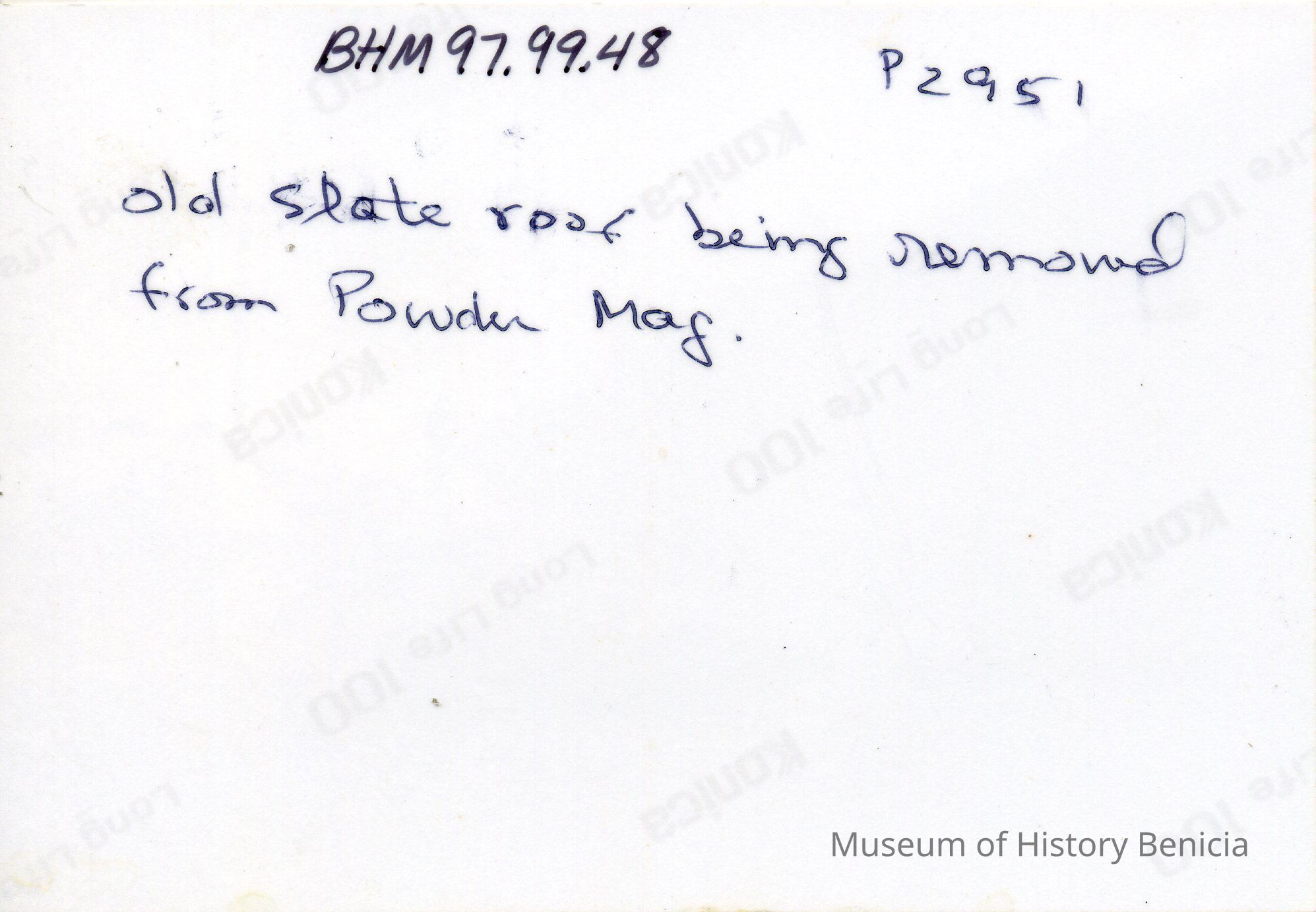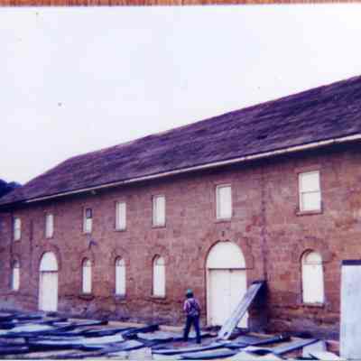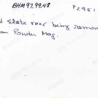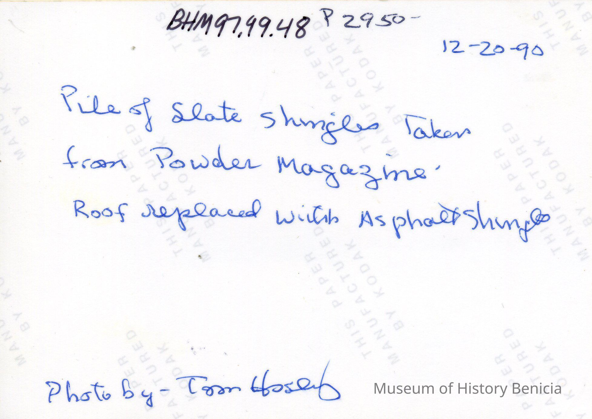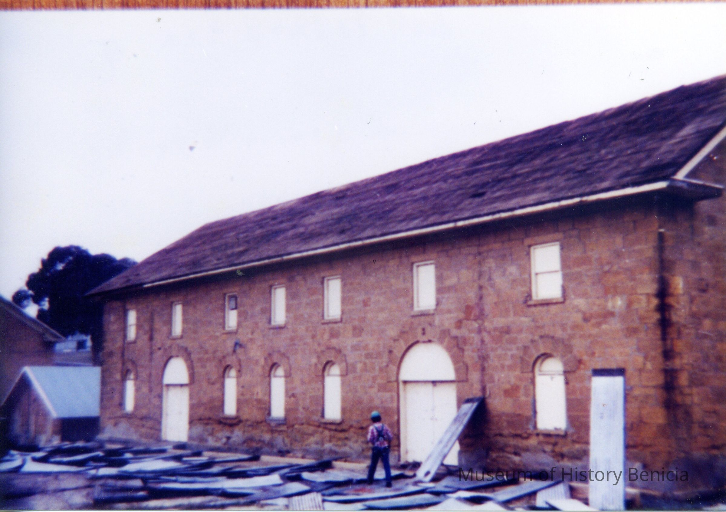 Ten photos of Museum building rehabilitation. New roofs, drainage and stairs (Bldg. 7). Work completed in April 1991. Specific information is listed on back of each photo.Collection