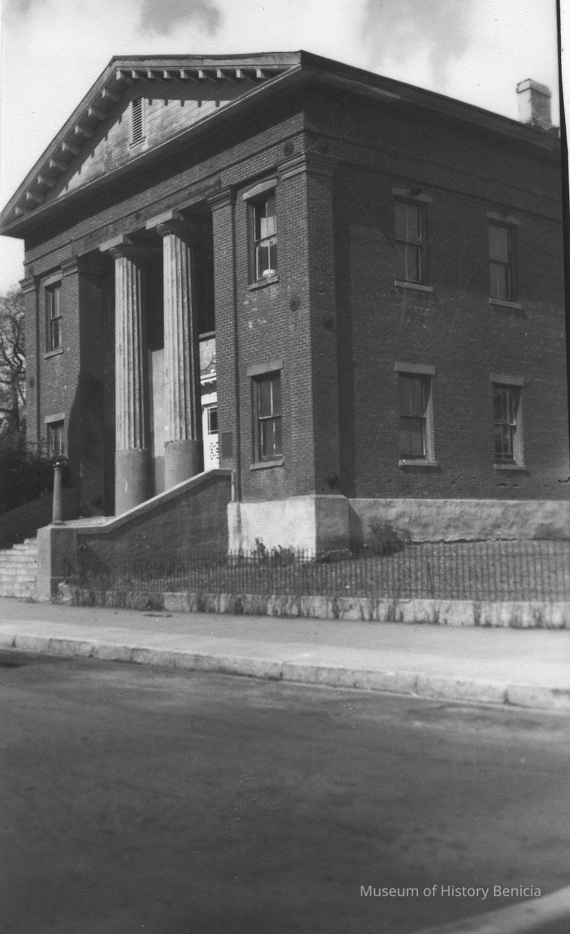 B/W photo of Benicia State Capitol, before restoration. This is a reprint of a section of an original negative