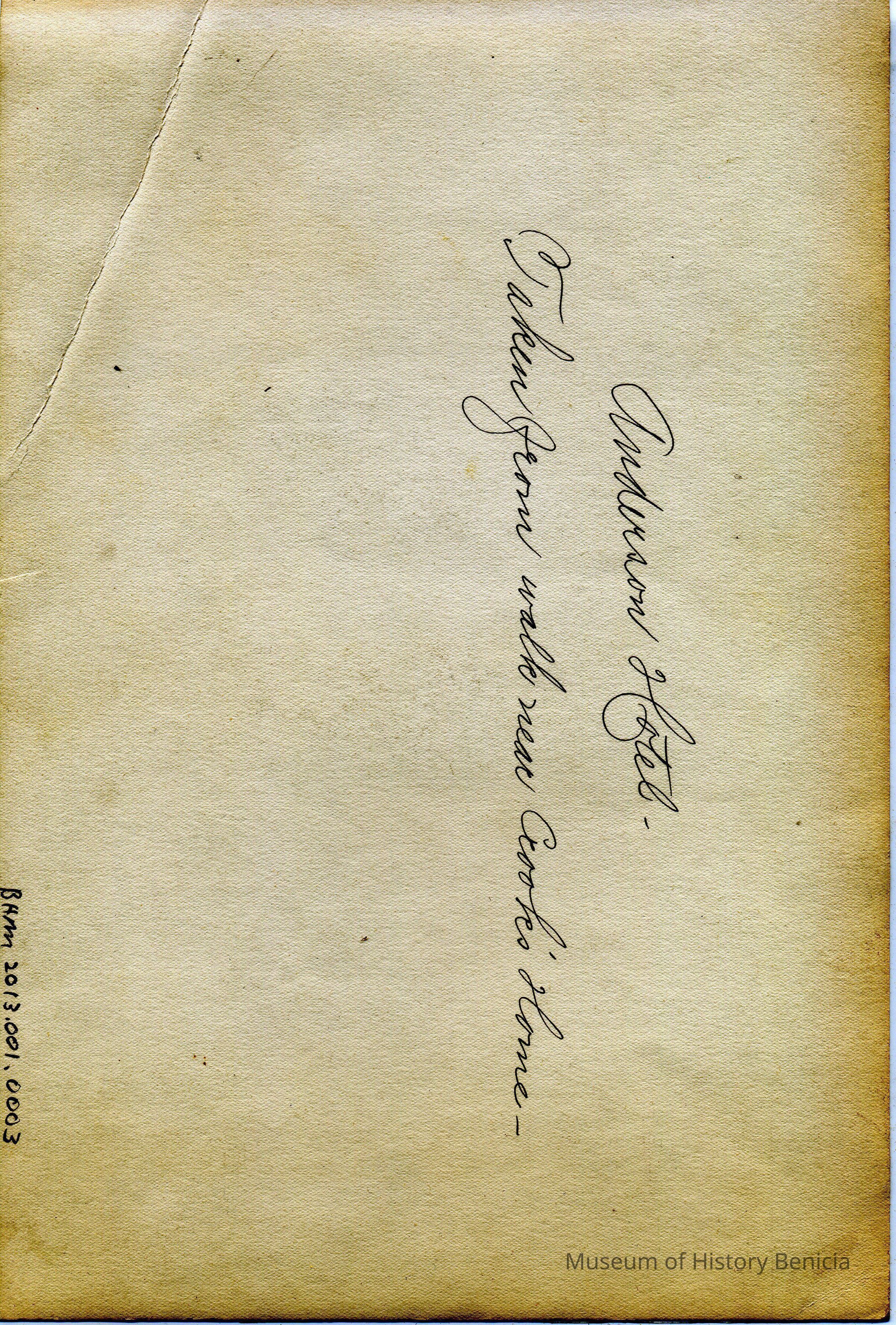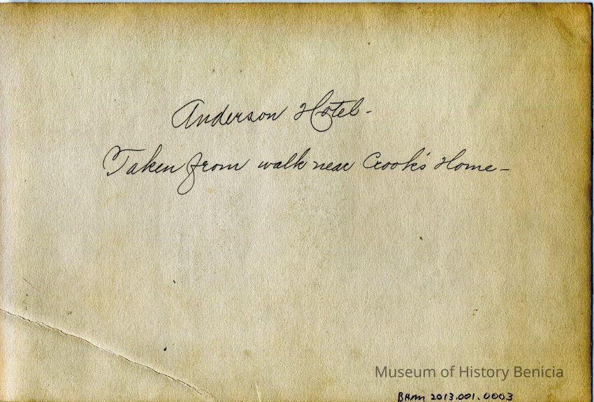 Photo of Benicia and the Anderson Hotel taken from walkway below the Crook's house. It has tape residue on the left side.
