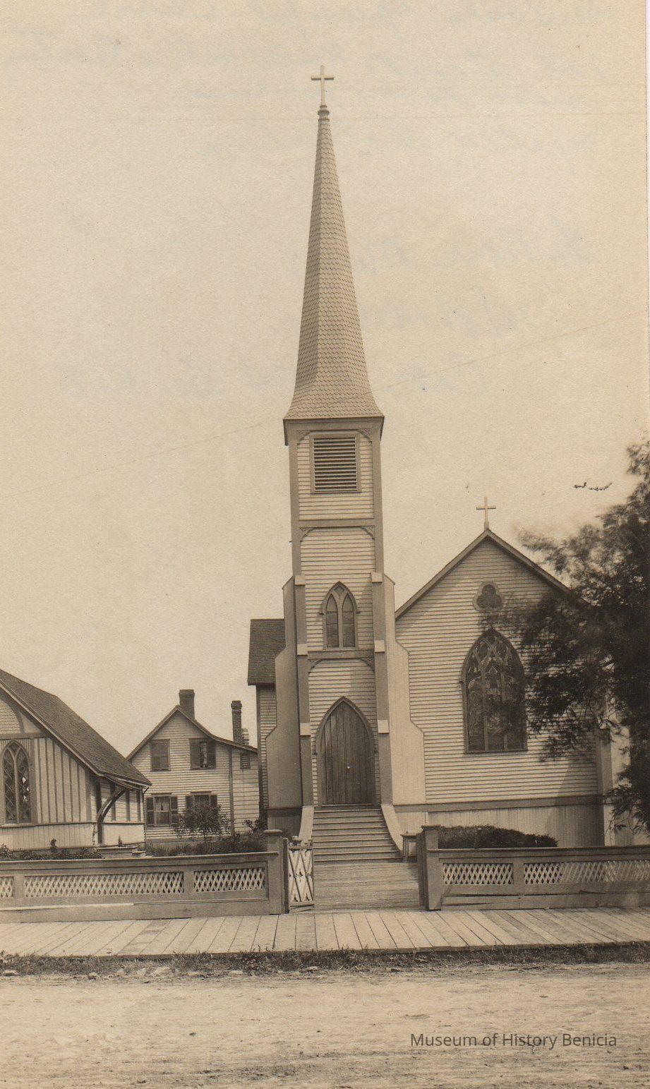B/W Photograph: Early of St. Paul's Episcopal Church and guild hall and rectory in background.