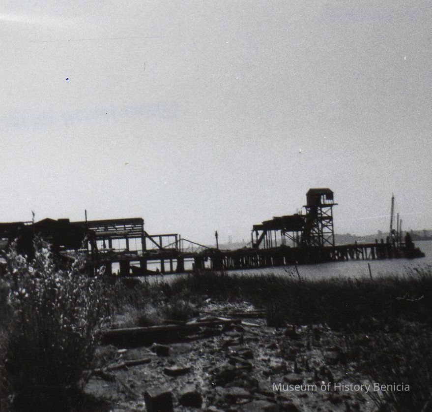 B/W photograph: remains of an old cannery at foot of First Street.