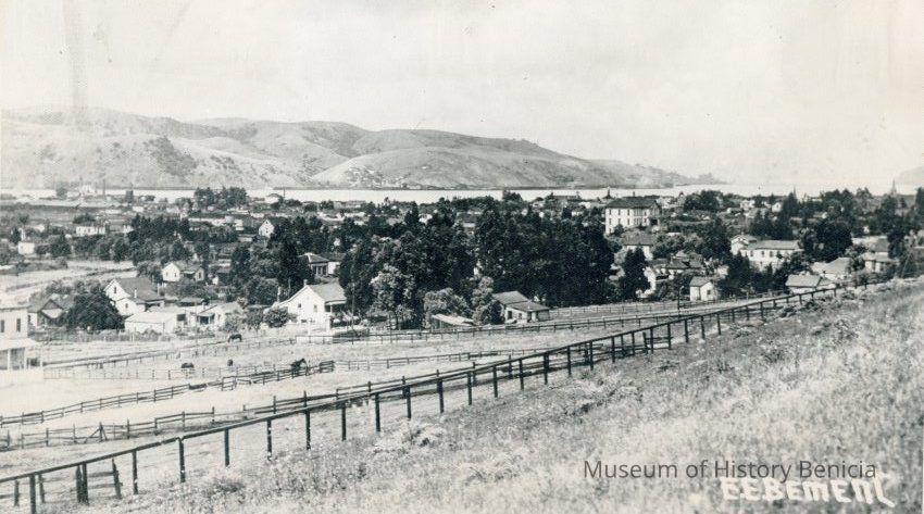 Photo of Benicia looking towards the straits. Photo is signed by E.E. Bement.