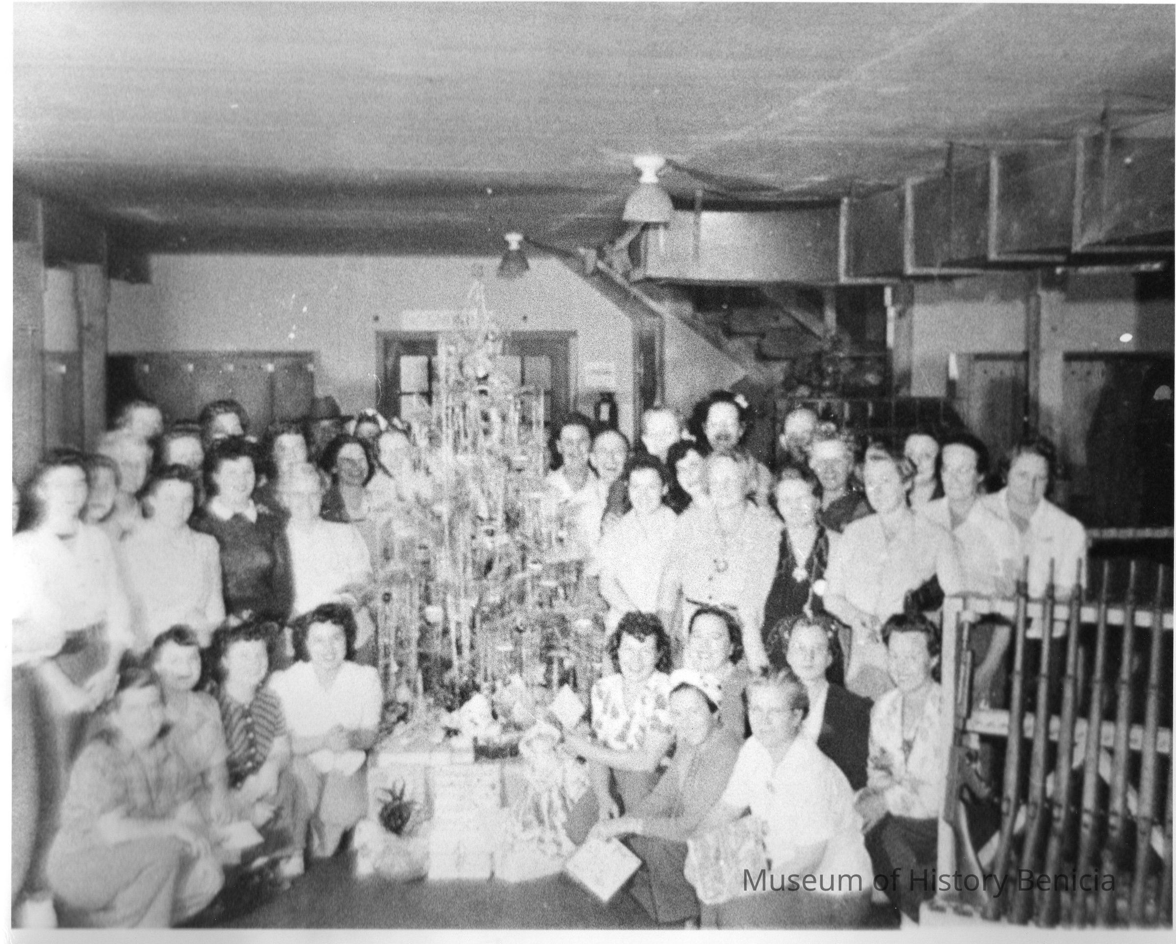 Small arms shop at Benicia Arsenal. B/W photo. Christmas party.