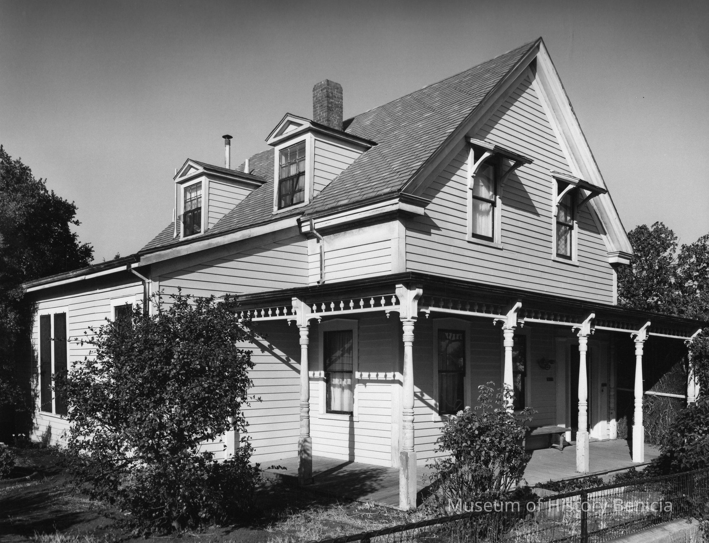 B/W photo of Greek Revival house located at 150 West G Street in Benicia. Photo is Figure 69 in Breugmann book.